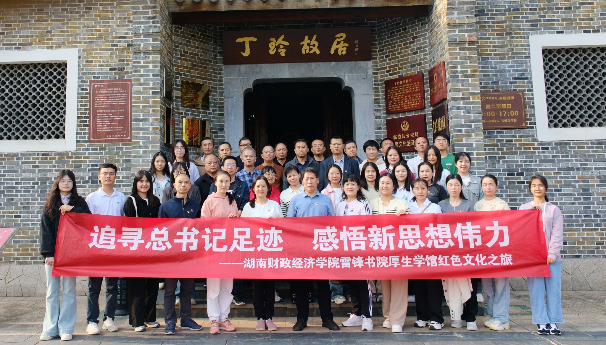 (本网讯)为进一步提高党员的政治理论水平,加强组织凝聚力、向心力,全面贯彻落实党的二十届三中全会精神,推动雷锋书院厚生学馆党建工作高质量发展,11月2日至3日,会计学院党委组织厚生学馆全体教工党员及学生党员代表赴湖南省常德市开展以“追寻总书记足迹,感悟新思想伟力”为主题的党日活动。