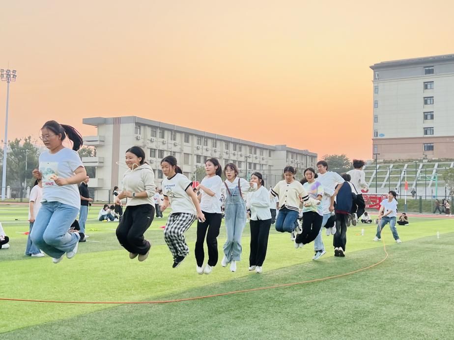 接着是紧张刺激的游戏环节。小组间展开了激烈角逐,大家争分夺秒、密切配合,充分展现了同学们的竞争意识和团队协作能力。联合舰队游戏更是考验了大家的默契程度,每个成员都全神贯注,在相互信任中向着目标前进。三人四足游戏让操场上充满了欢声笑语,同学们肩并肩、腿绑腿,在一次次尝试中掌握平衡和节奏,摔倒了重新站起,继续前行,体现出不放弃的精神。一跳到底游戏则将现场气氛推向高潮,同学们为了共同的目标而跳跃,欢笑声和加油声此起彼伏。
