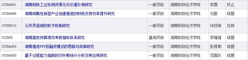 湖南省社科规划办对2015-2019年度立项课题试行网络结题,需要各项目负责人(详细名单见下表)在湖南省社科基金项目网络管理平台注册,完善个人立项信息,并提交,待审核后以备今后网络结题。