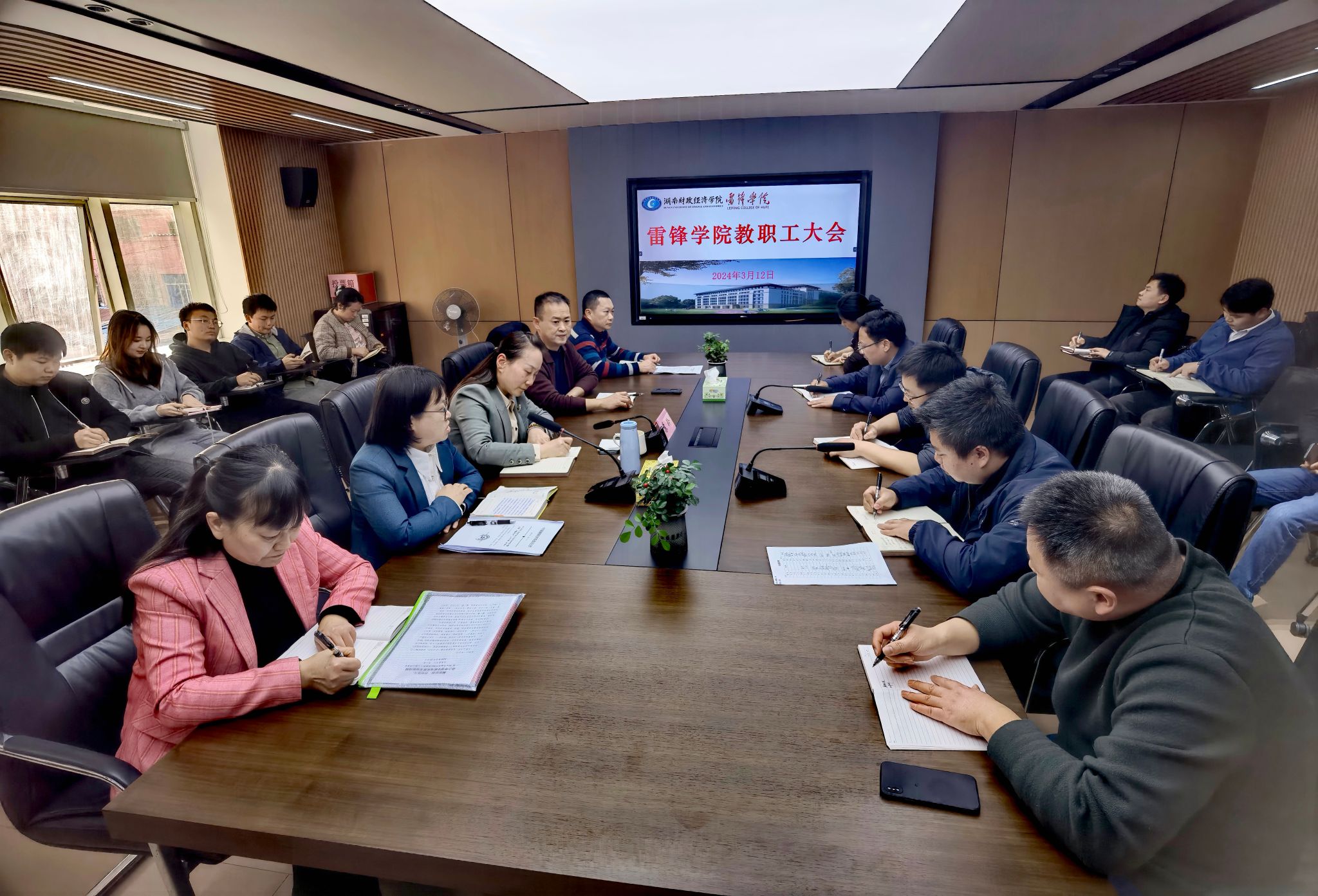 2024年3月12日下午,我院在行政楼205会议室召开教职工大会,并深入学习《2026世界杯官方合作网站推动高质量发展“质量建设年”工作方案》、《2026世界杯官方合作网站创建“五清校园”作风建设年工作方案》文件精神,会议由雷锋学院直属党支部刘东艳主持,校党委副书记苏玲出席会议,学院全体教职工参加会议。