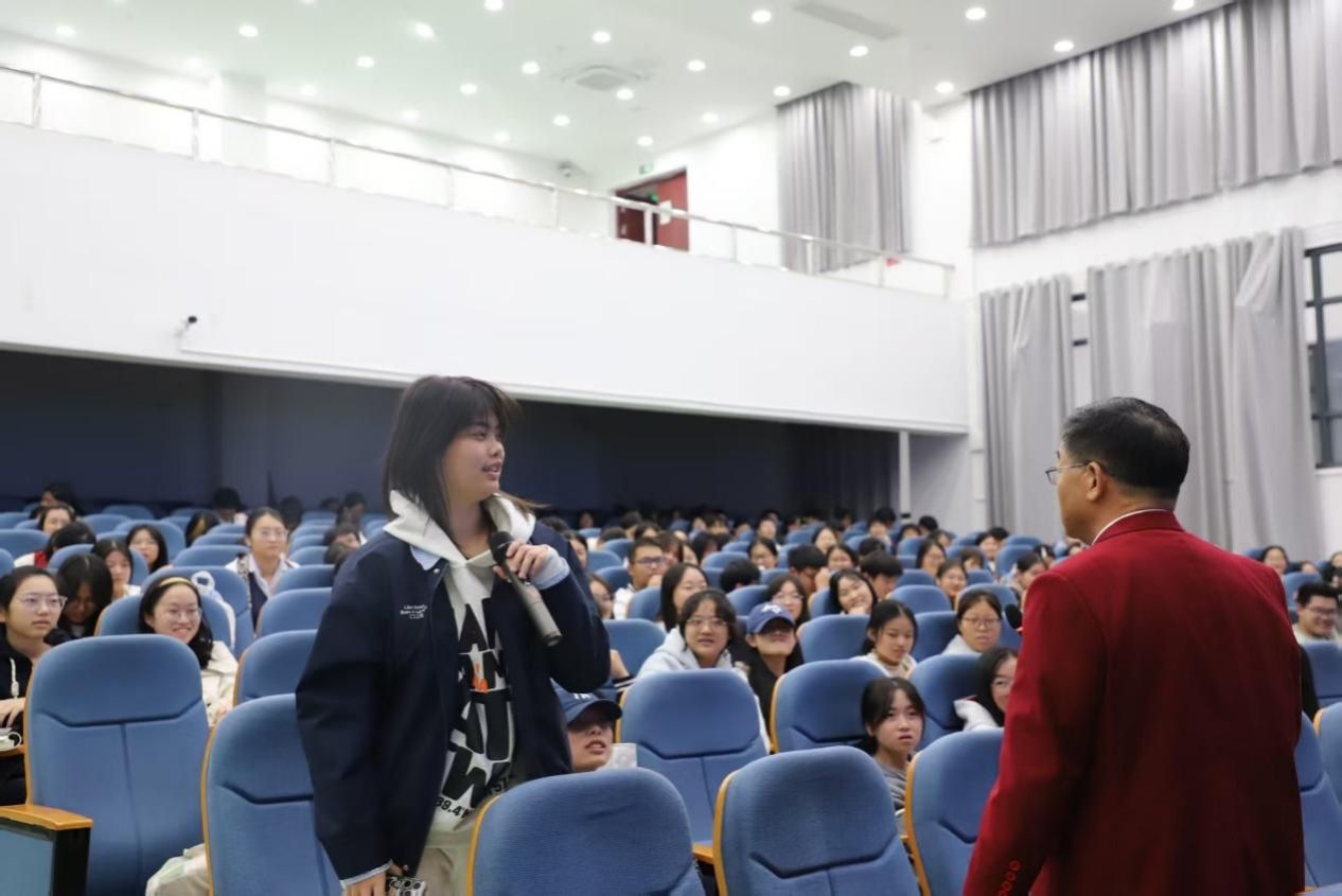 讲座中,李艳翎以“行为定式”互动实验切入,通过鼓掌手势、拧毛巾习惯等趣味互动,结合“跳蚤实验”“温水煮青蛙”等案例,生动阐释了思维与行为惯性对个人发展的束缚,引导学生理解“环境塑造习惯,理念决定方向”的成长逻辑。在认知升级与创新模块,李艳翎通过“地址表述顺序”“传话实验”等环节,揭示文化差异、信息传递偏差对认知的影响;以“穷人思维vs富人思维”的故事,强调格局与长远规划的重要性;结合自身国际赛事管理经历,对比中外处事逻辑,帮助学生建立理性认知框架。在“坚持与发展”环节,他以马云、俞敏洪等创业者为例,解读“理念先行、坚持为基”的成长路径,鼓励学生在大学阶段明确目标、突破定式。