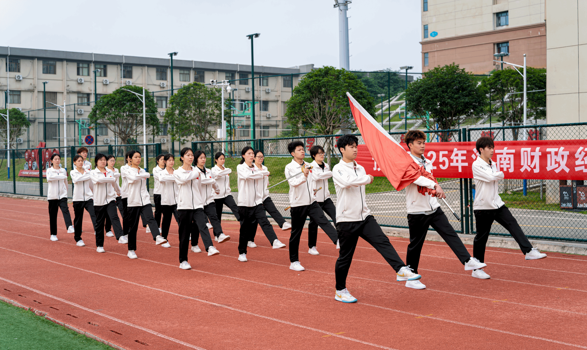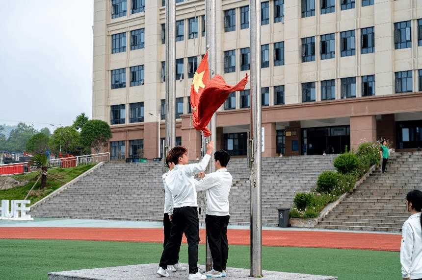 晨曦初露,国旗飘扬。2025年5月19日清晨,校国旗护卫队举行2024-2025第二学期第十三周升旗仪式。雷锋书院副书记黎红梅、正德学馆全体辅导员老师以及全馆学生参加本次升旗仪式。