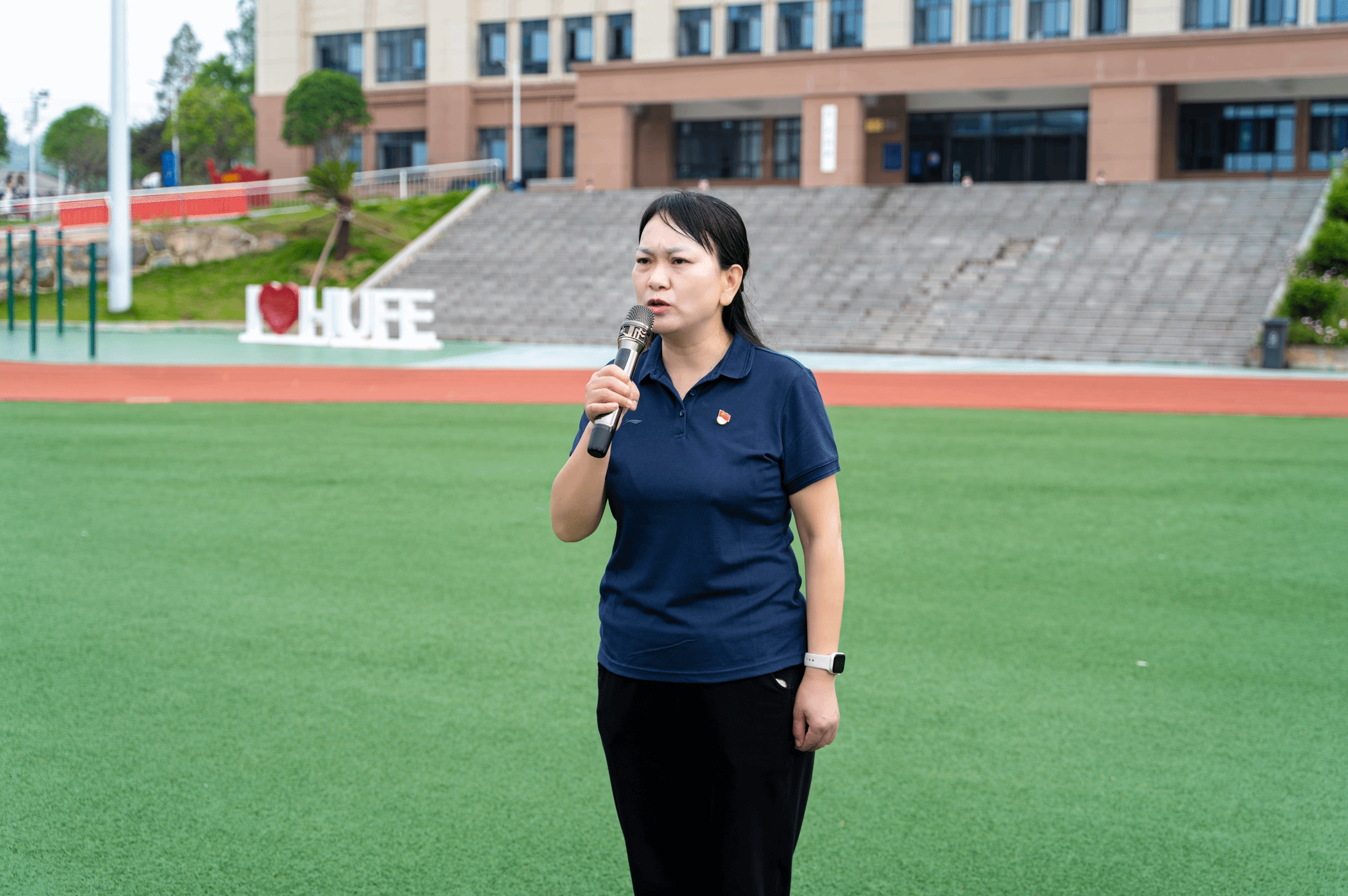 7时30分许,千余名师生整齐列队。国旗护卫队迈着铿锵步伐护送国旗入场,在雄壮的国歌声中,五星红旗冉冉升起。仪式结束后,黎书记面向全体师生发表讲话指出,本科教学审核评估是关系学校长远发展的重要机遇,当前预评估工作已开始,全校上下要统一思想、凝聚共识,以最佳状态迎接专家组进校考察。