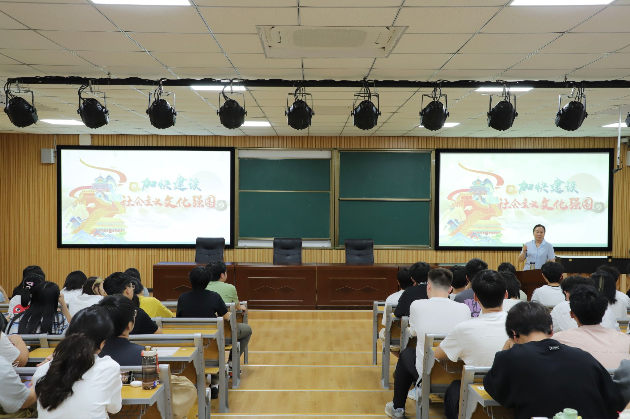 (本网讯)5月16日下午,学校党委副书记苏玲在雷锋书院至诚楼L1214教室为雷锋书院学子讲授“加快建设社会主义文化强国”专题形势与政策课。