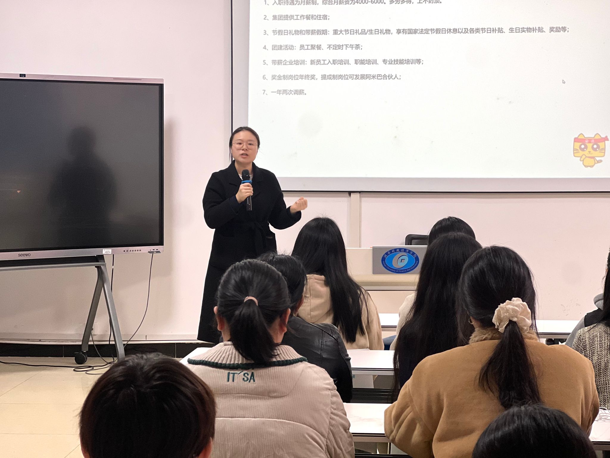 为提升毕业生就业能力,助力实现高质量就业,12月17日下午,马克思主义学院特邀北京金企文化集团有限公司举办2026届毕业生专场招聘会。此次招聘活动共提供20余个工作岗位,吸引了马克思主义学院、法学与公共管理学院、人文与艺术学院、工商管理学院的学生前来参与。