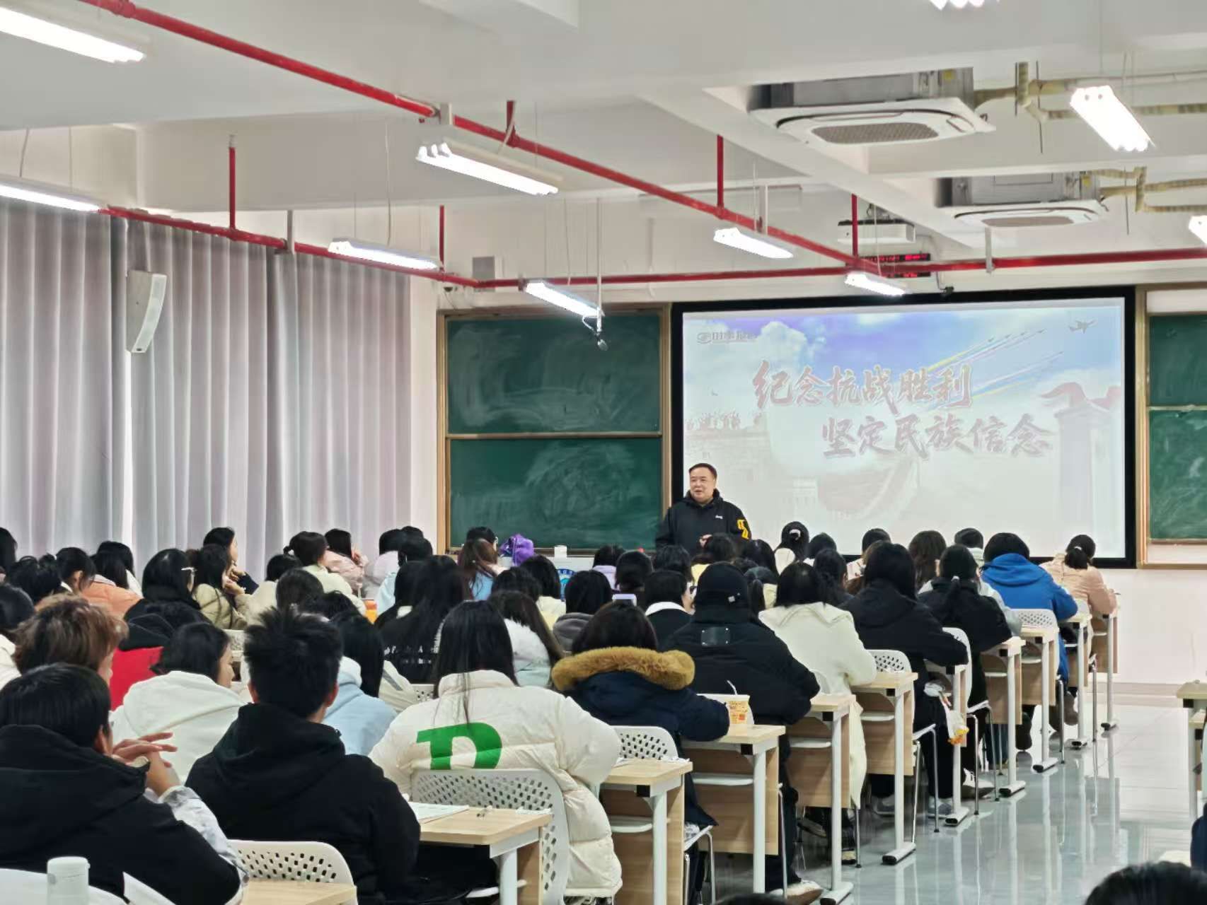 校党委副书记苏玲,副校长赵鹤平,纪委书记李雪山,副校长刘钟理,副校长潘爱民,副校长李小娟,党委委员、宣传部、统战部部长文炳勋分别围绕“纪念抗战胜利 坚定民族信念”“正确认识中国经济热点问题”“党的二十届四中全会精神解读”专题为学生讲授思政课,引导学生提升综合素养,将小我融入大我,在服务党和国家事业发展进程中实现人生理想和自身价值。
