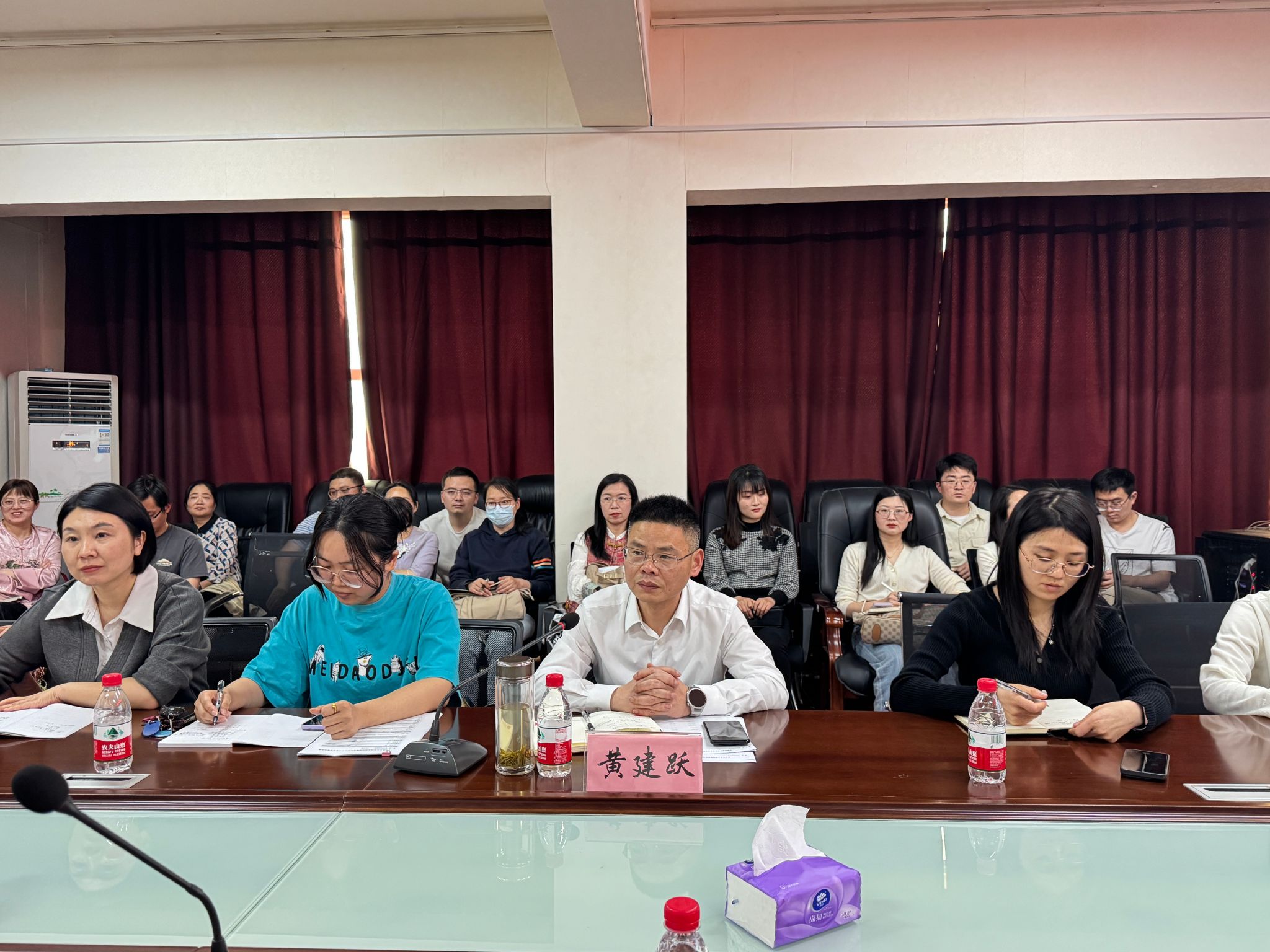 与会老师认真记录同学们的意见建议,就部分问题进行了现场解答和说明。黄建跃表示,学院将充分考虑同学们提出的合理化意见和建议,并制定有效的改进措施。
