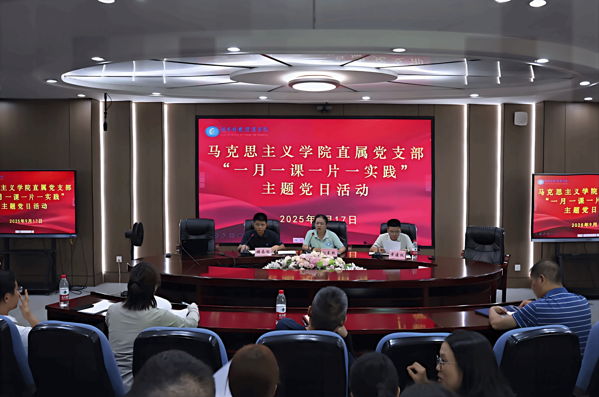 9月17日下午,马克思主义学院在办公楼五楼视频会议室开展“一月一课一片一实践”主题党日活动。本次活动以“弘扬伟大抗战精神 推进民族复兴伟业”为主题。活动由院直属党支部书记刘东艳主持,全院师生党员参加。