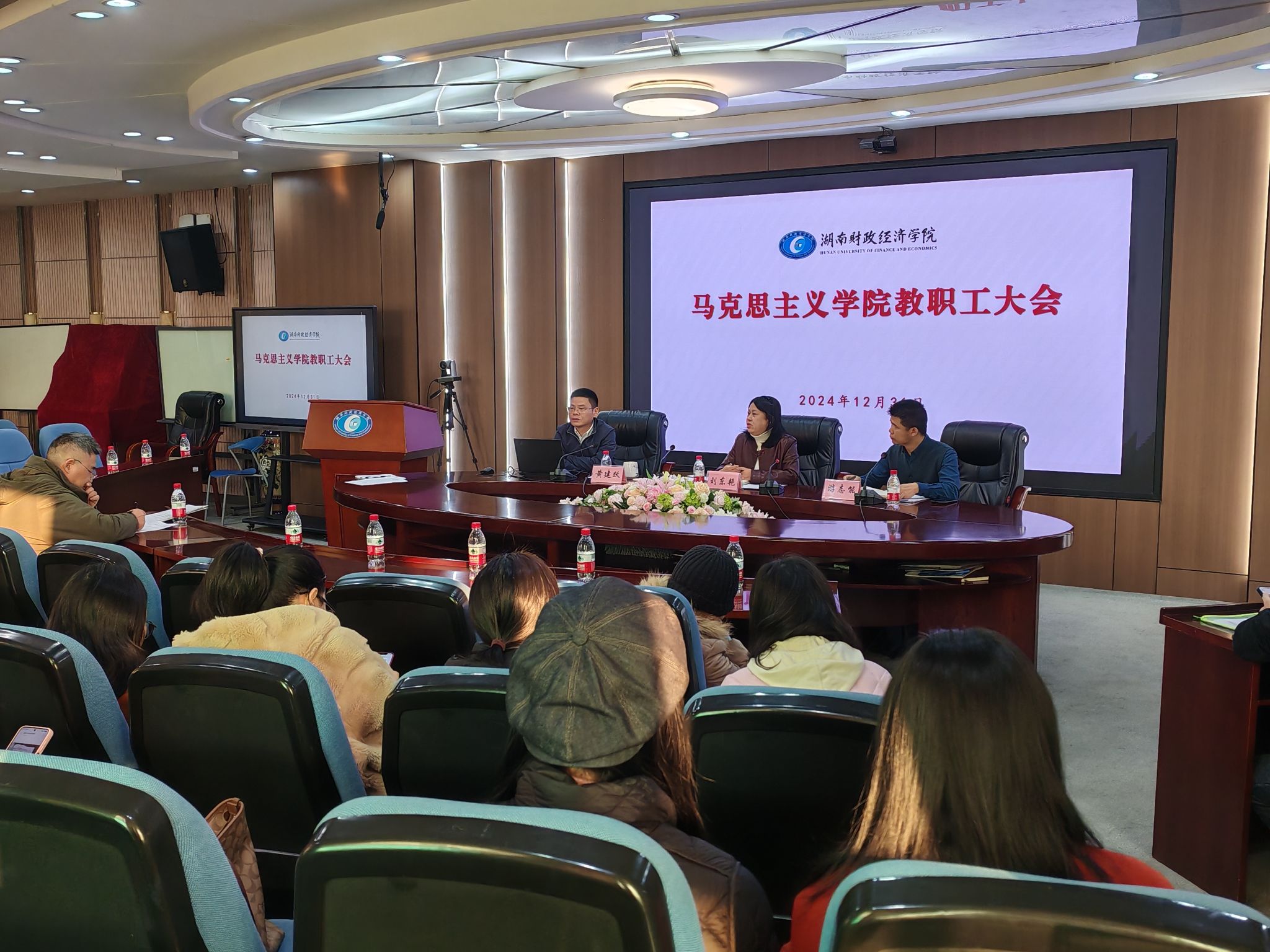 12月31日上午,马克思主义学院在主校区办公楼五楼视频会议室召开深入学习贯彻习近平文化思想学习纲要的会议。会议由院直属党支部书记刘东艳主持,全院教职工参加会议。