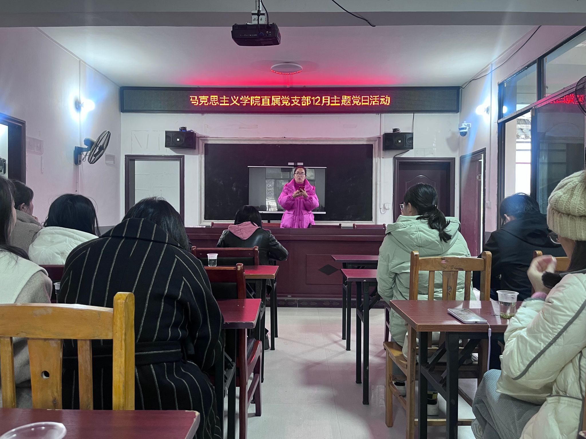 马克思主义理论系教师阮远和马克思主义中国化系教师李瑞群作精彩的微党课分享。阮远带领与会党员重温党的百年光辉历程,深刻感悟党的初心使命。李瑞群着眼“扬帆谋新篇”,提出我们当加强学习、提升素质,勇于担当、主动作为,严于律己、清正廉洁,以更加昂扬的斗志、更加务实的作风开启新的征程。之后,与会党员共同观看红星云12月“一月一课一片一实践”主题党日活动学习视频。