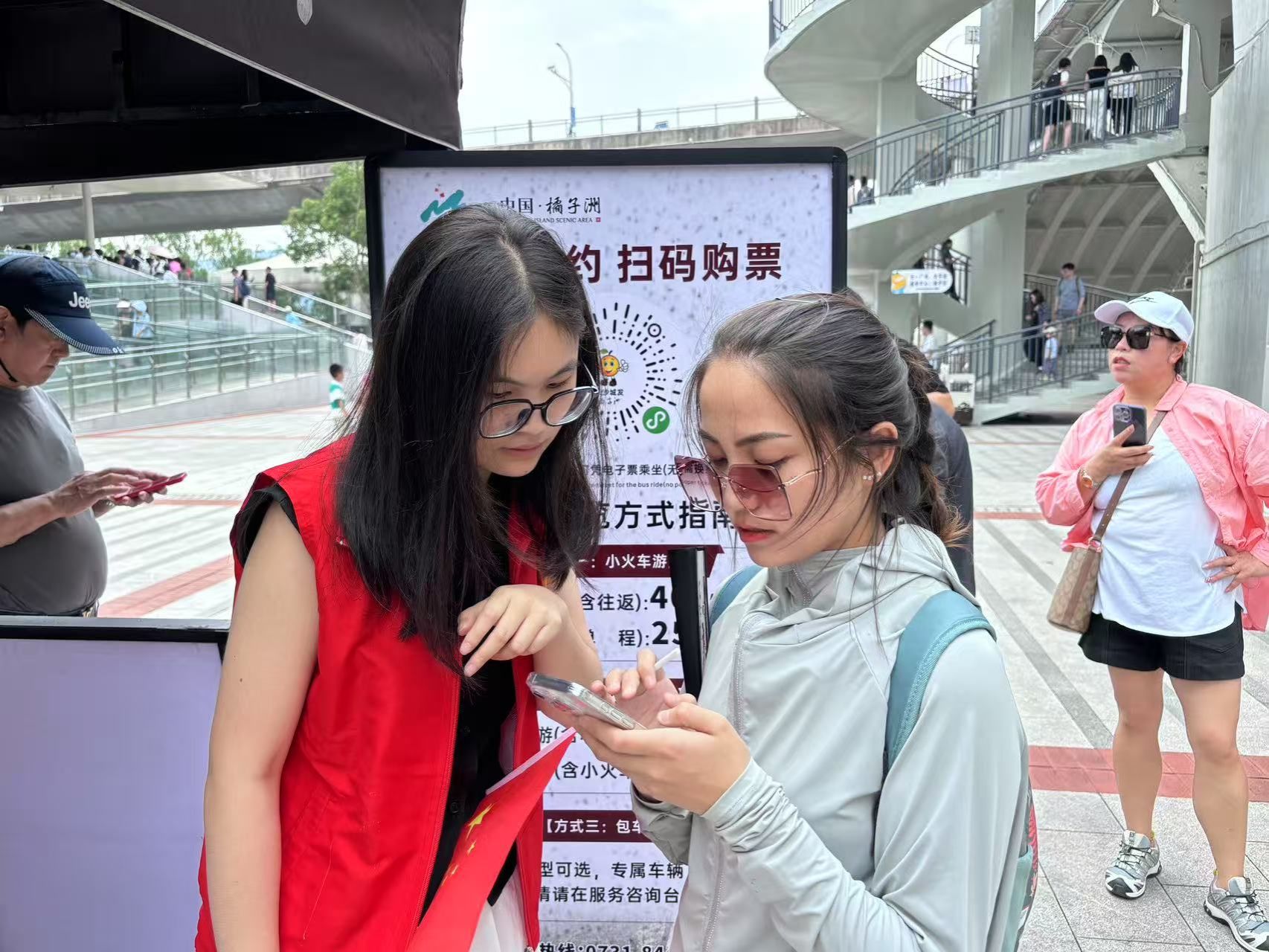 (图为我院学子为游客进行景区预约流程讲解)