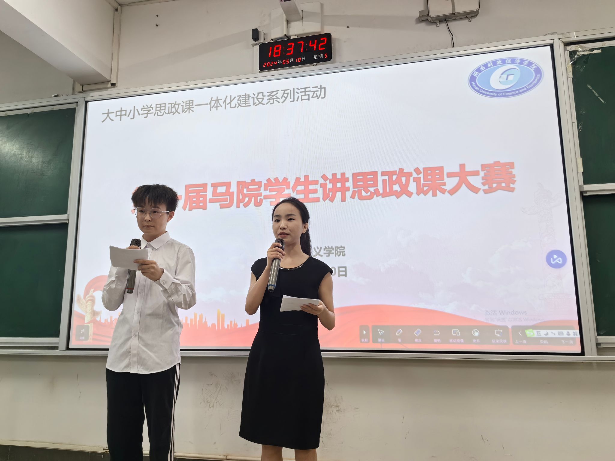 为深入贯彻习近平总书记关于教育的重要论述,切实推进大中小学思政课一体化建设,5月10日晚上,第一届马院学生讲思政课大赛在主校区3111教室举行。