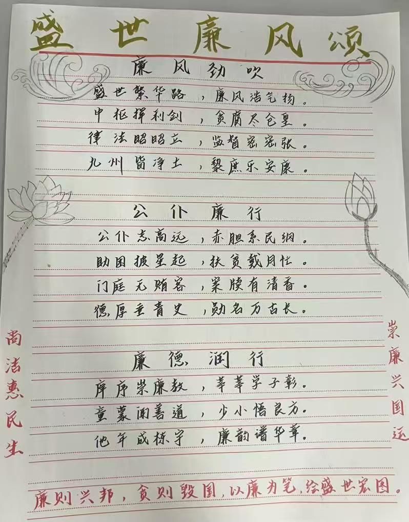 “廉洁之光,照耀千秋”,马克思主义学院通过举办此类廉洁文化活动,积极推进校园廉洁文化建设。未来,我们将继续深化廉洁文化建设,创新宣传教育方式,营造风清气正的校园氛围,让清正廉洁成为大家共同的价值追求和行为准则。