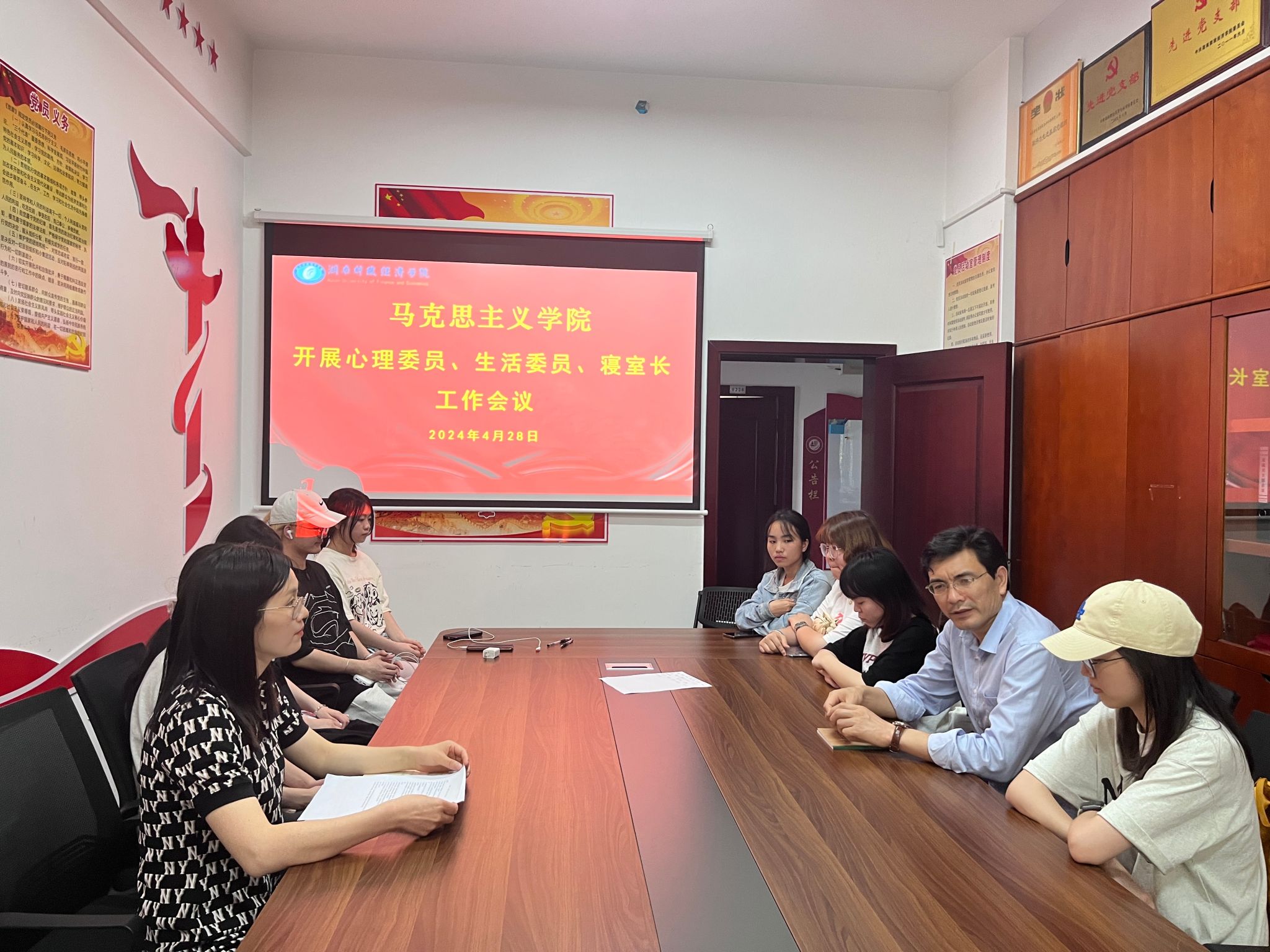 为普及心理健康知识,加强学生安全教育,做好“五一”假期学生安全工作,提升马克思主义学院心理、生活委员及寝室长工作能力,2024年4月28日,我院召开心理委员、生活委员和寝室长工作会议。学院学工办主任周雄艳主持会议。