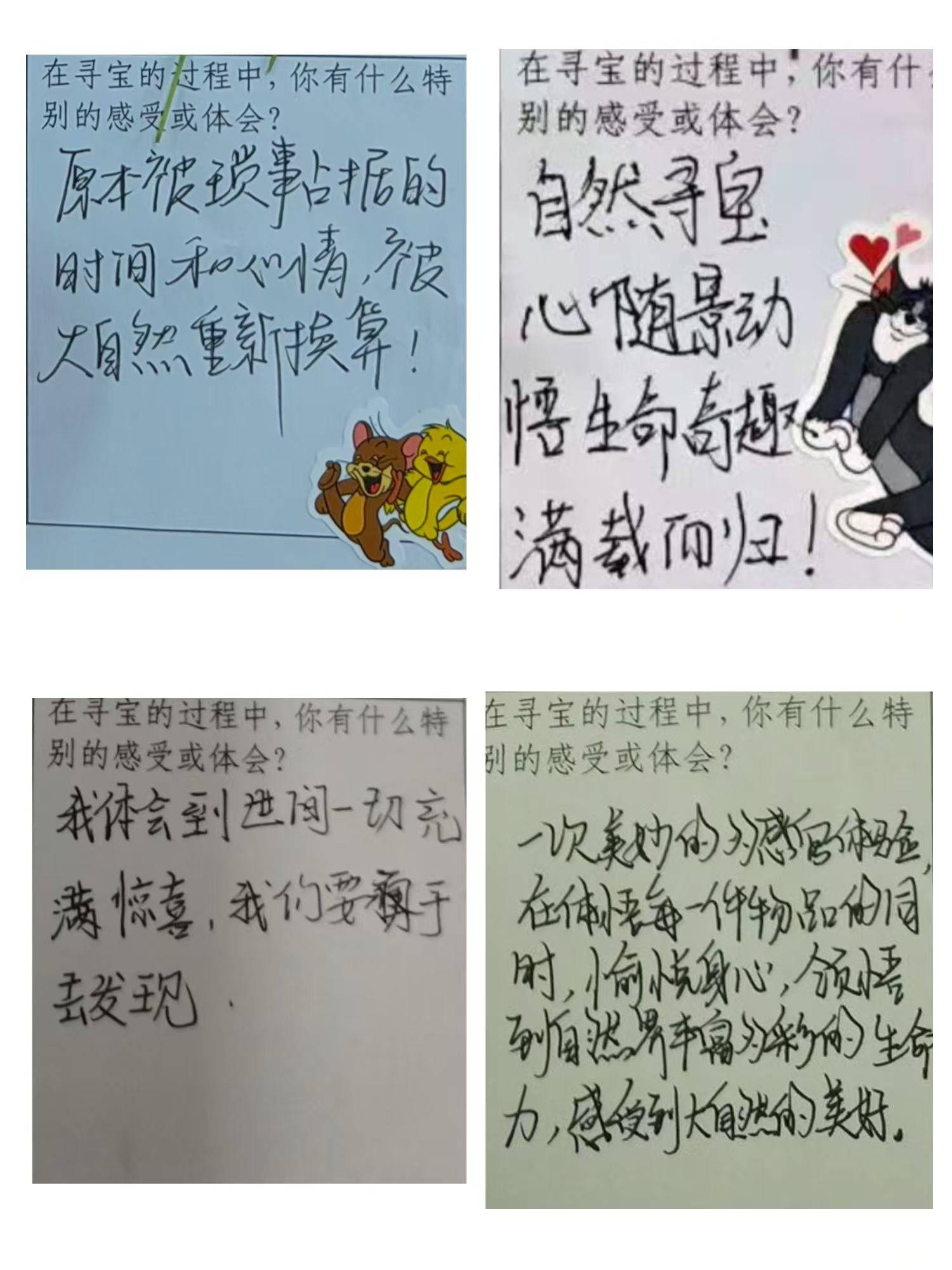 寻宝之旅覆盖视觉、嗅觉、味觉等多感官体验,在寻宝过程中,同学们细致地观察每一片树叶的轮廓,体悟每一件物品的温度,不仅提升了观察力和实践技能,也对周围的自然环境有了更深刻的认识。