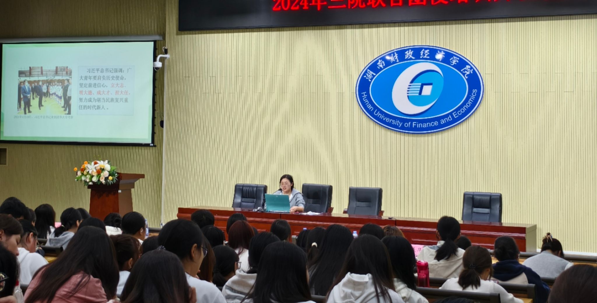 学校会计学院党委书记戴恩湘、财政金融学院党委书记肖燕飞、马克思主义学院直属党支部书记刘东艳,会计学院党委副书记肖芳,联合学院各学工办主任、团总支书记以及221名青年团员参加了开班仪式。仪式由刘一环、王林海主持。