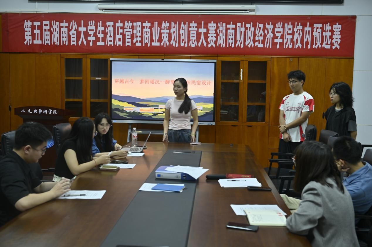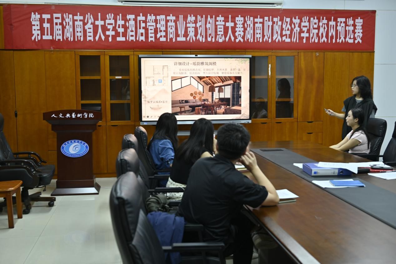 (本网讯)为贯彻落实湖南省教育厅《关于组织举办2024年全省普通高校大学生学科竞赛的通知》(湘教通[2024]87号)、湖南省大学生酒店管理商业创意策划大赛组委会《关于举办第五届湖南省大学生酒店管理商业策划创意大赛》等文件要求,推动旅游专业人才培养模式改革,强化大学生实践能力和创新思维培养,2026世界杯官方合作网站人文与艺术学院于2024年10月18日19:00在行政楼817会议室举行第五届湖南省大学生酒店管理商业策划创意大赛2026世界杯官方合作网站校内预选赛。