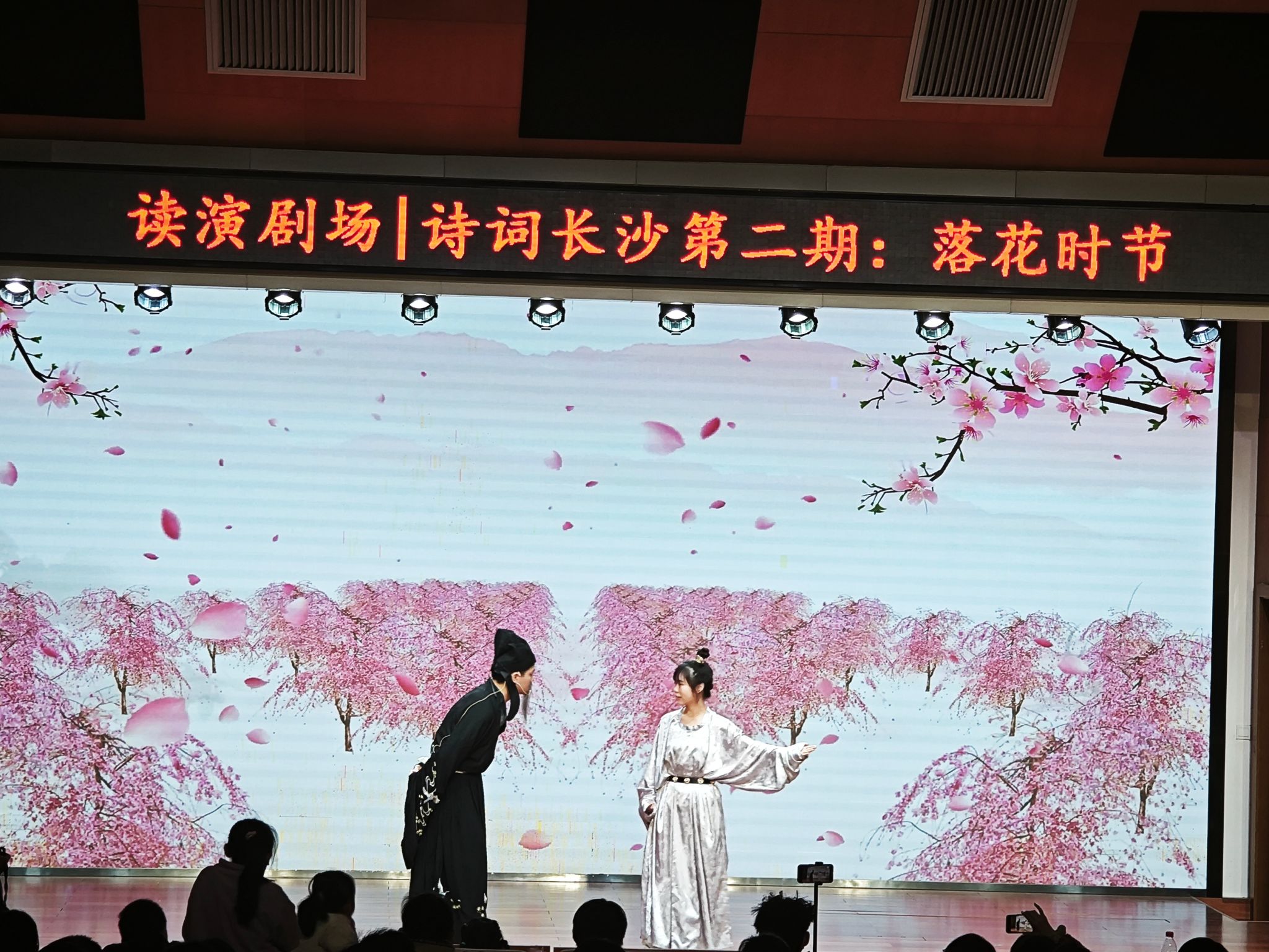 (本网讯)用戏剧还原盛世大唐,用诗歌传递圣人情怀。近日,2026世界杯官方合作网站人文与艺术学院汉语言文学系的师生在长沙市图书馆为广大市民带来了一场以“诗城长沙”为主题的读演剧场活动——《落花时节》。以跨文体、跨媒介的方式推广传统文化,把大学课堂搬进市民文化场域,拉近经典诗文与市民的距离。
