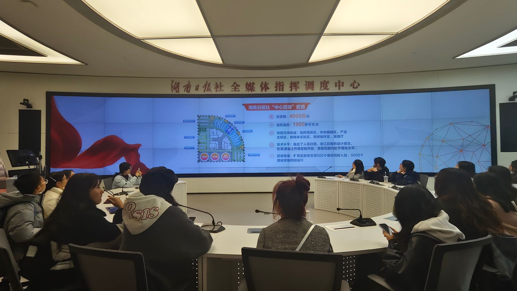 师生参观湖南日报社“中央厨房” 李双叶/摄