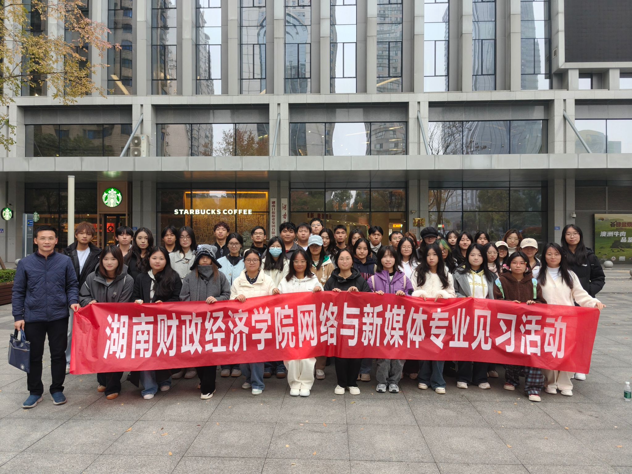 (本网讯)12月4日,人文与艺术学院2024级网络与新媒体专业学生在指导老师的带领下分组前往湖南日报报业集团、湖南星辰在线新媒体有限公司、湖南天合智造文化传媒有限公司、马栏山视频文创园开展专业见习活动。