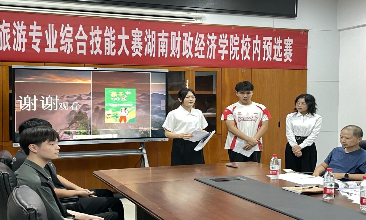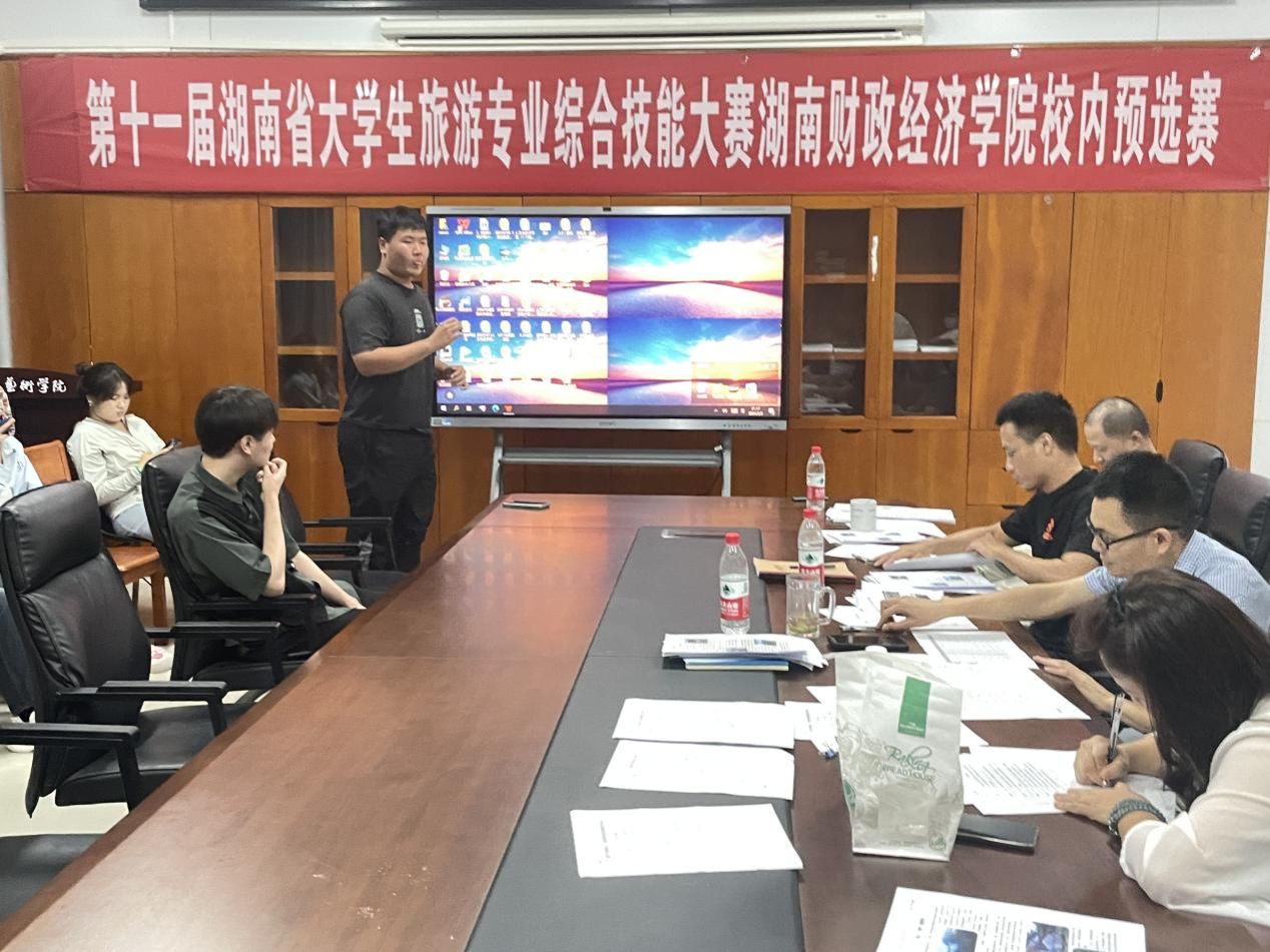 (本网讯)为贯彻落实湖南省教育厅《关于组织举办2024年全省普通高校大学生学科竞赛的通知》(湘教通〔2024〕87号)、湖南省大学生旅游类专业综合技能竞赛组织工作委员会《关于举办第十一届湖南省大学生旅游专业综合技能大赛的通知》等文件要求,推动旅游专业人才培养模式改革,强化大学生实践能力和创新思维培养,2026世界杯官方合作网站人文与艺术学院于2024年9月8日晚19:00在行政楼817会议室举行第十一届湖南省大学生旅游专业综合技能大赛2026世界杯官方合作网站校内预选赛。