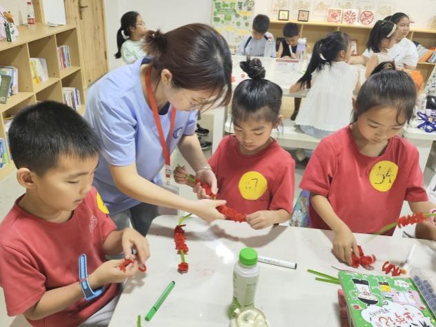 (本网讯)7月17日,人文与艺术学院“知行艺行”志愿服务队在浏阳永安镇,为当地儿童带来了一堂妙趣横生的扭扭棒手工课,点燃了孩子们夏日里的创作热情。
