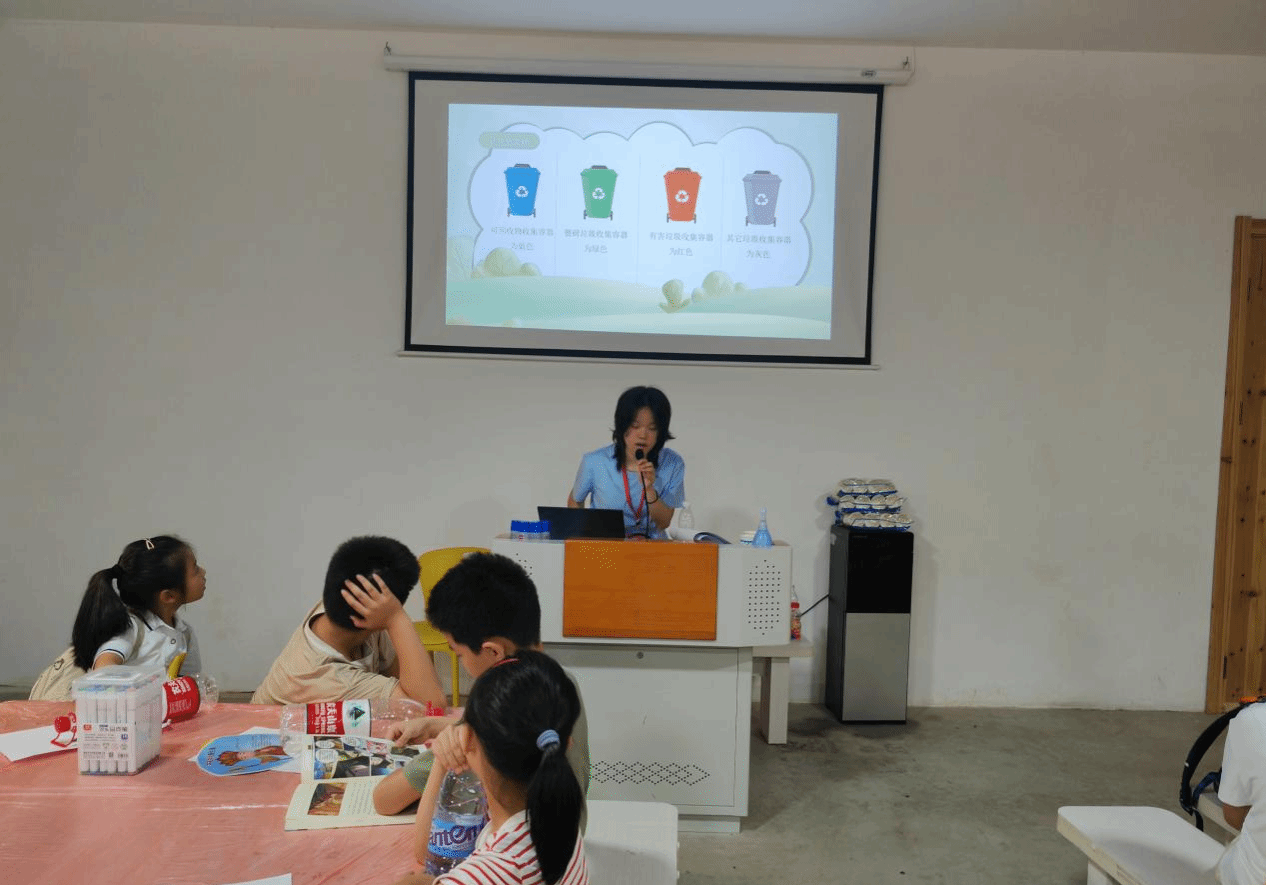 “废旧电池藏着看不见的危害,旧衣服其实是可回收的宝贝,剩饭鱼骨也有专属的‘归宿’……” 活动伊始,小江老师和小郭老师以生活场景为切入点,娓娓道来生活垃圾的种类。一张张实物图片在屏幕上流转,让小朋友们对日常垃圾有了清晰的认知。 随后,他们着重阐述了生活垃圾带来的危害。焚烧垃圾会污染空气;垃圾随意丢弃还会污染水资源,大量垃圾的堆积更是占用了宝贵的土地资源。一个个触目惊心的案例,让 “保护环境,人人有责” 的理念,像夏日凉风般吹进孩子们的心里。