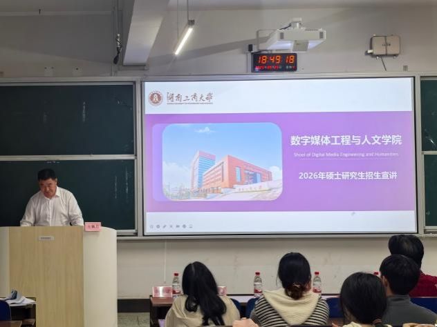 讲座开始,王佩良教授率先分享,围绕学院3个硕士学位点展开介绍。学院以“新工科与新文科融合”为特色,拥有院士引领的师资队伍及湘江实验室、元宇宙实验室等高端平台,与芒果TV、红网等20余个单位共建实习基地。在招生方面,中国语言文学(学硕)、新闻与传播(专硕)、图书情报(专硕)均呈现“过国家线高录取率”优势,其中2025年图书情报专业首次招生即实现100%录取,且初试不考政治与高等数学,仅考察管理综合与英语,为考生降低备考门槛。
