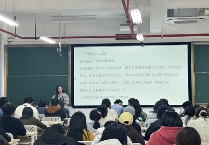 人文与艺术学院星辰学通社负责人欧阳雪做了招新介绍,鼓励新生们加入学通社锻炼和成长。
