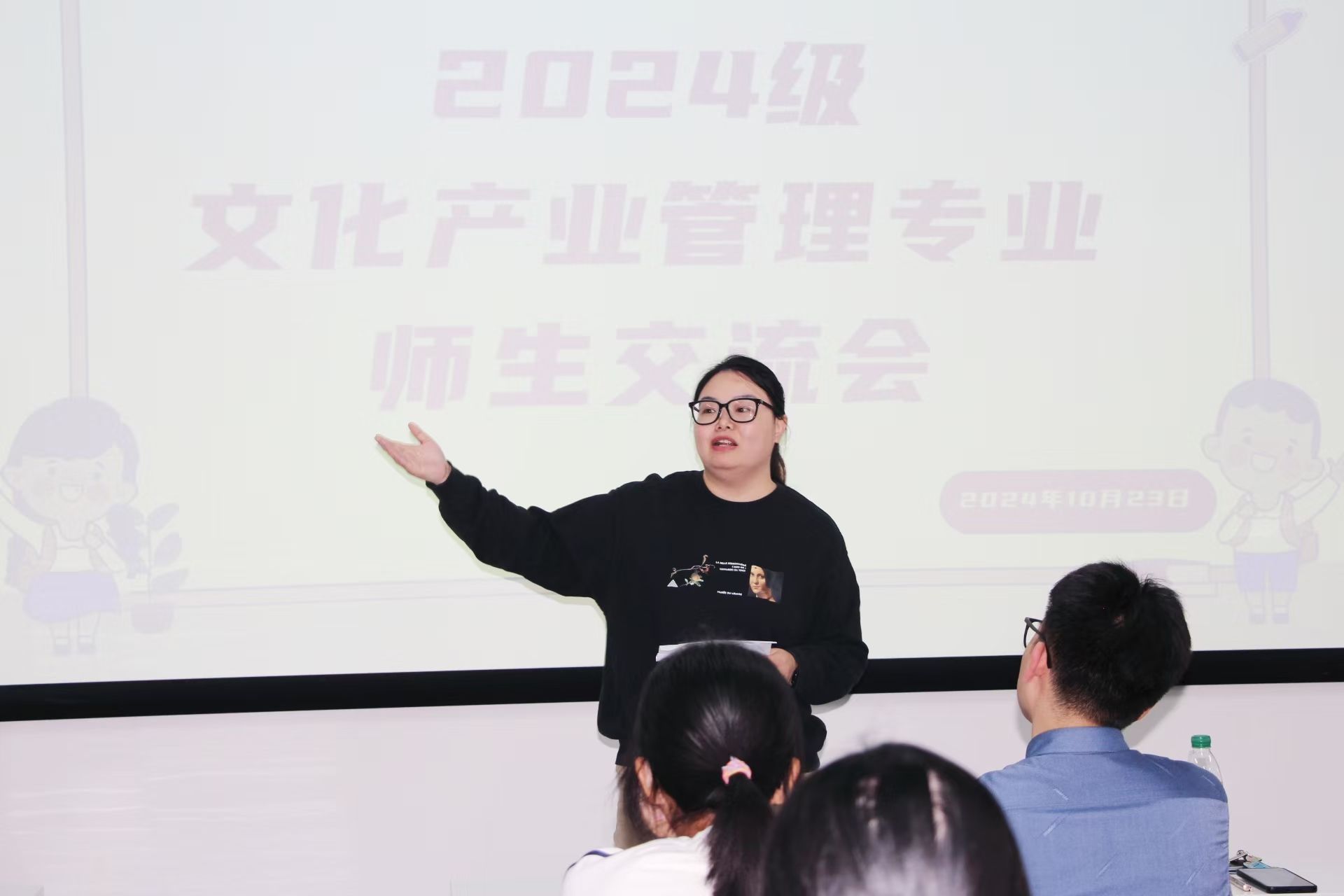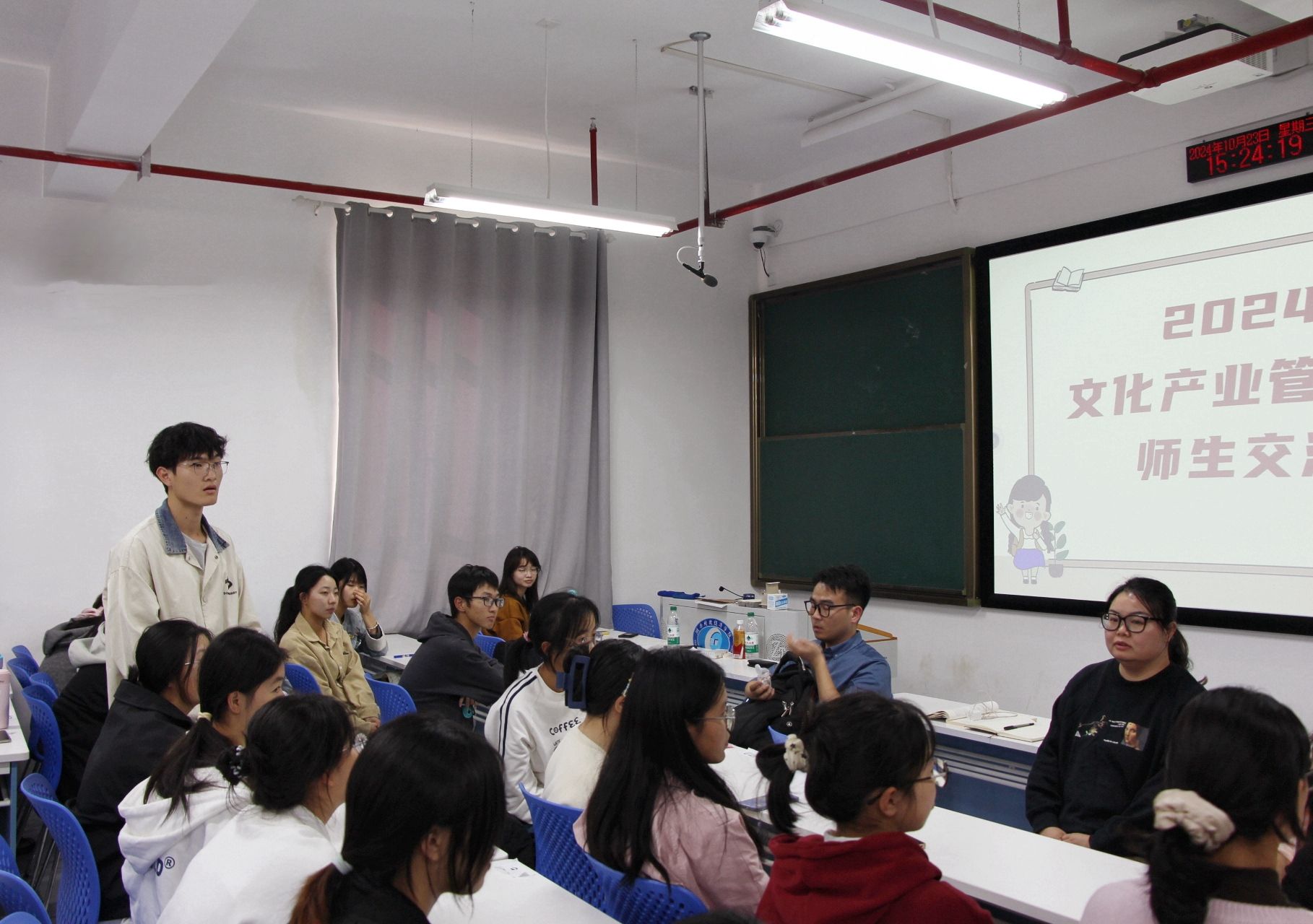 (本网讯)10月23日下午,“2024级文化产业管理专业师生交流会”在雷峰书院L1501如期举办。本次交流会在文化产业管理系主任刘振的主持下,专业老师与24级文化产业管理专业新生就立德树人、优秀品格养成、专业学习、职业发展进行了深入交流。出席本次交流会的教师有人文与艺术学院副院长毛璐璐、彭丽副教授、石蒙蒙副教授、彭涛副教授、李维老师和彭兰斌老师。