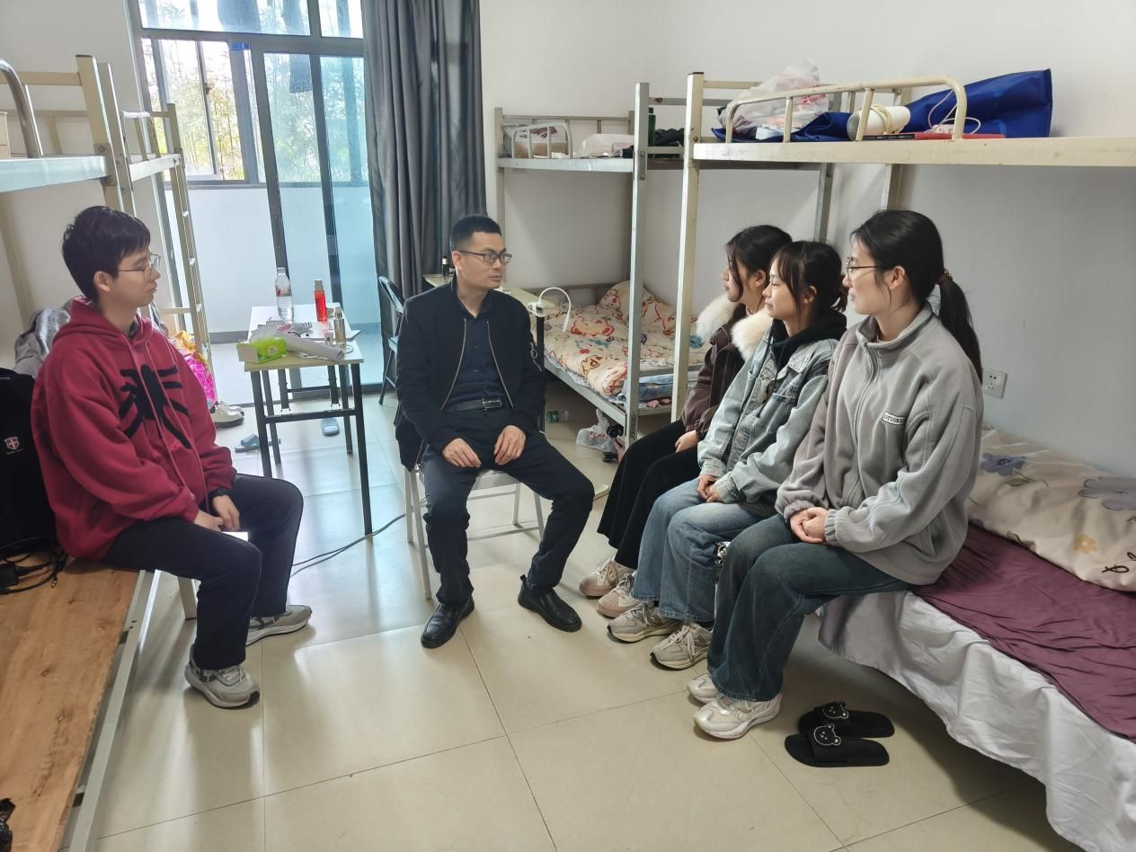 王亚辉与基地执行经理吉诚一同前往宿舍看了实习生的住宿环境,并与同学们座谈交流是否存在生活、工作等方面的困难。学生们谈到宿舍网络不是很稳定,希望基地尽快解决。目前学生们的主要工作是熟悉科普馆资料与讲解技巧培训,为4月下旬的研学讲解做前期准备。交谈中了解到学生们状态不错,已基本适应实习单位的工作与生活机制,伙食方面也还不错,与公司管理人员同桌共餐。