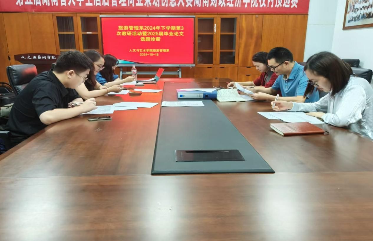 (本网讯)10月18日,人文与艺术学院旅游管理系在817会议室开展“2025届毕业论文(设计)选题诊断”教研活动。活动由旅游管理系主任王亚辉主持,人文与艺术学院旅游管理专业负责人王美霞、专任教师陈洁、李竹、谢雪、王一川等参加。
