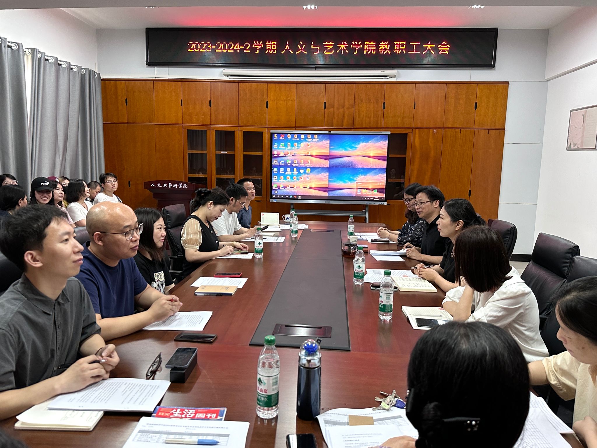 (本网讯)6月16日上午,人文与艺术学院在办公楼817会议室召开全院教职工大会。院长林铁主持会议。
