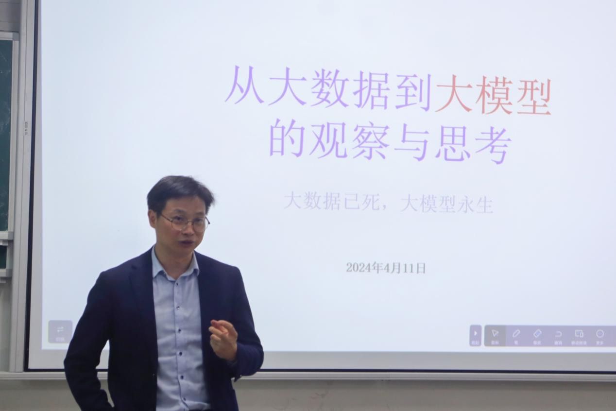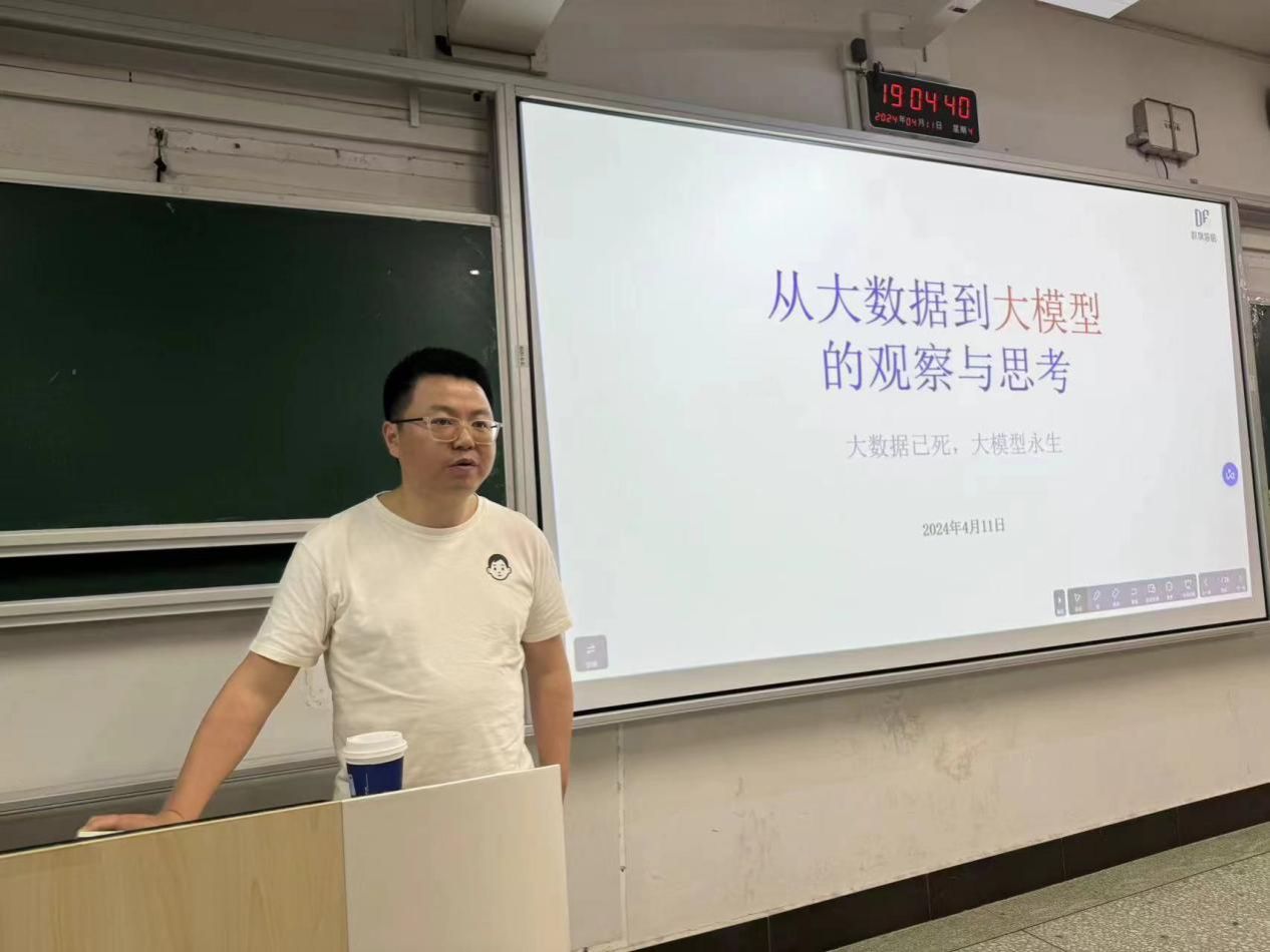 (本网讯)4月11日,应人文与艺术学院邀请,数旗智酷创始人、首席研究员唐鹏在世界杯官网第三教学楼3108教室开展“人工智能:从大数据到大模型的观察与思考”专题讲座。本次讲座由人文与艺术学院院长林铁主持。网络与新媒体专业学生参加讲座。