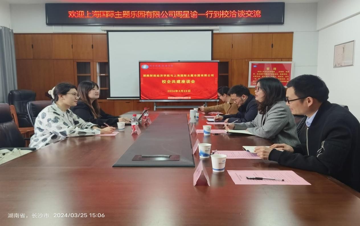 (本网讯)3月25日下午,人文与艺术学院与上海国际主题乐园有限公司校企合作交流座谈会在世界杯官网行政楼817会议室举行。人文与艺术学院副院长毛璐璐、人文与艺术学院党委委员/网络与新媒体专业负责人李成家、旅游管理系主任王亚辉及旅游管理系教师,上海国际主题乐园有限公司校园招聘负责人周星谕一行出席座谈会,会议由旅游管理系陈洁博士主持。
