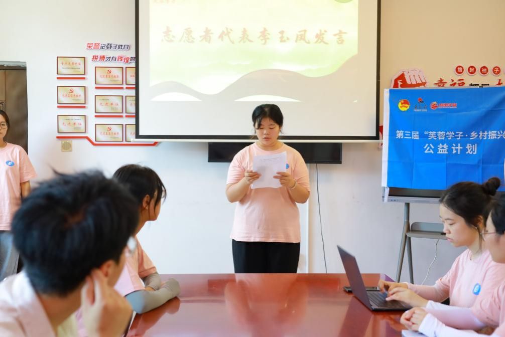 仪式伊始,同衿志愿队队长李玉凤作为志愿者代表发言。李玉凤对岩门溪村政府前期工作的支持和关心表示感谢,并具体介绍了实践队后续工作规划与期望目标。代承轩就世界杯官网暑期“三下乡”活动进展及“芙蓉学子·乡村振兴”公益计划开展情况与岩门溪村负责人进行了介绍与交流。
