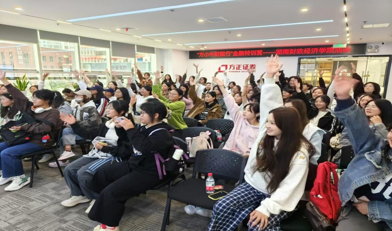 在方正证券投资者教育基地,讲解员带领同学们参观了基地,并与同学们交流了关于金融市场的基础知识以及证券业务相关操作流程。随后,同学们聆听了由证券分析师李斯特主讲的“证券行业职业规划及大学生校园金融风险防范”讲座,并在问答互动中开阔视野、拓宽专业知识面。
