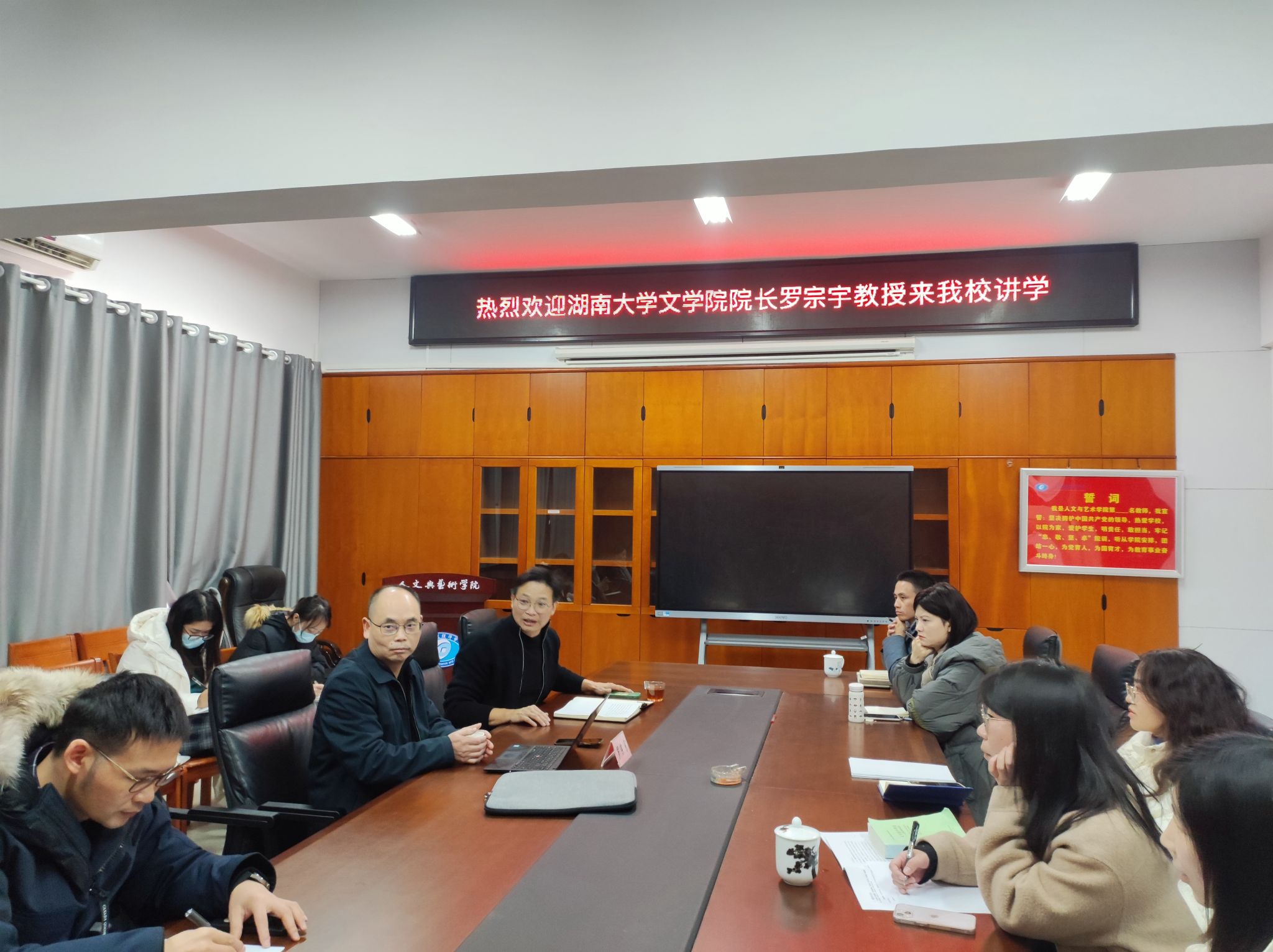 (本网讯)2024年1月3日下午,应人文与艺术学院邀请,湖南大学文学院院长罗宗宇教授来我院作学科建设与科研指导讲座。人文与艺术学院院长林铁主持讲座,科研处处长李勇辉、人文与艺术学院教师参加讲座。