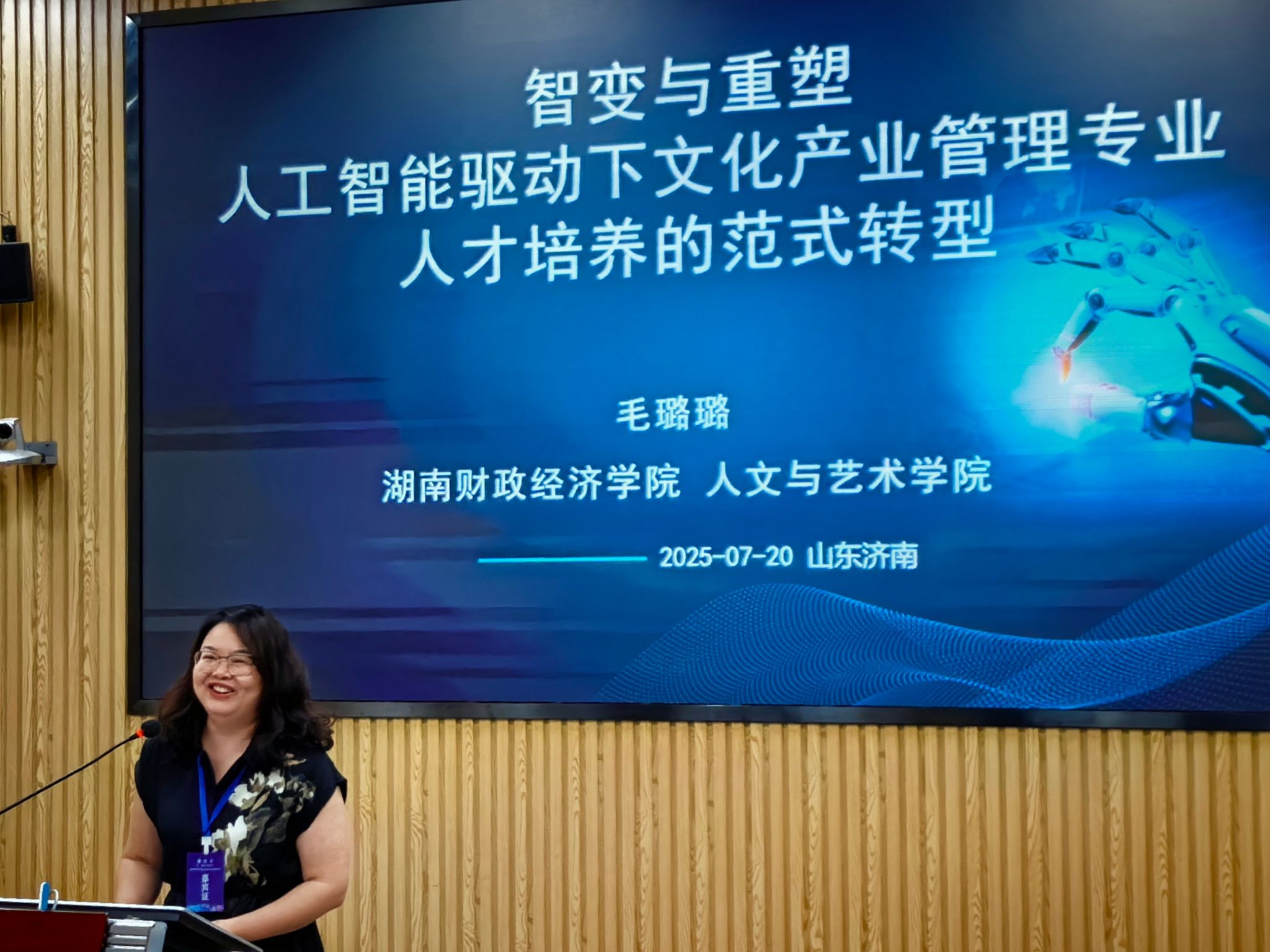 我院副院长毛璐璐受邀参会,并做主题发言。毛璐璐以“智变与重塑:人工智能驱动下文化产业管理专业人才培养的范式转型”为主题,从人才培养现状、体系变革、生态构建三个方面展开交流与分享,与会人员共同探索人工智能对文化产业管理专业人才培养的挑战与机遇,介绍世界杯官网文化产业管理专业在AI赋能师资能力与教学效果方面的探索,获得现场热烈反响。本次参会展现了学院的教学教研风采,提升了学校在文化管理研究领域的显示度和影响力。