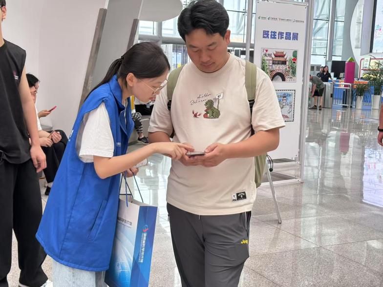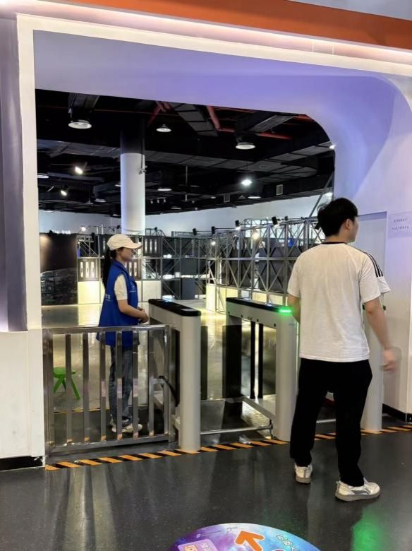 穿着憨态可爱玩偶服的志愿者一登场,变吸引全场的目光。他们在人群中蹦蹦跳跳,主动和游客合影互动,让科技馆处处洋溢欢乐与温馨。而在展馆入口,引导志愿者们,手把手教游客如何预约,随即扫码入馆,让参观流程变得轻松又顺畅。