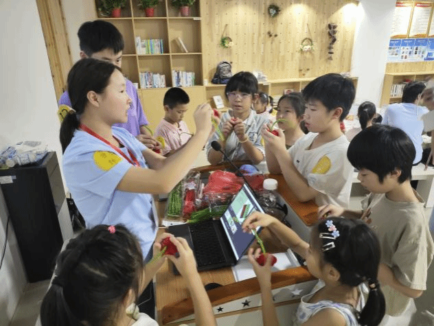 (本网讯)7月17日,人文与艺术学院“知行艺行”志愿服务队在浏阳永安镇,为当地儿童带来了一堂妙趣横生的扭扭棒手工课,点燃了孩子们夏日里的创作热情。