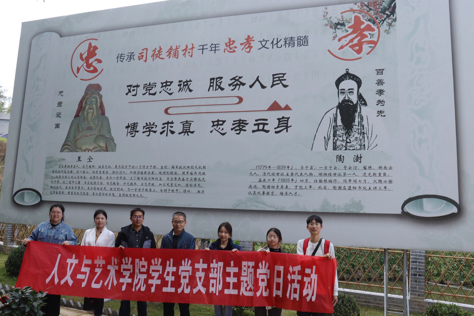 党员代表在忠孝文化牌下合影