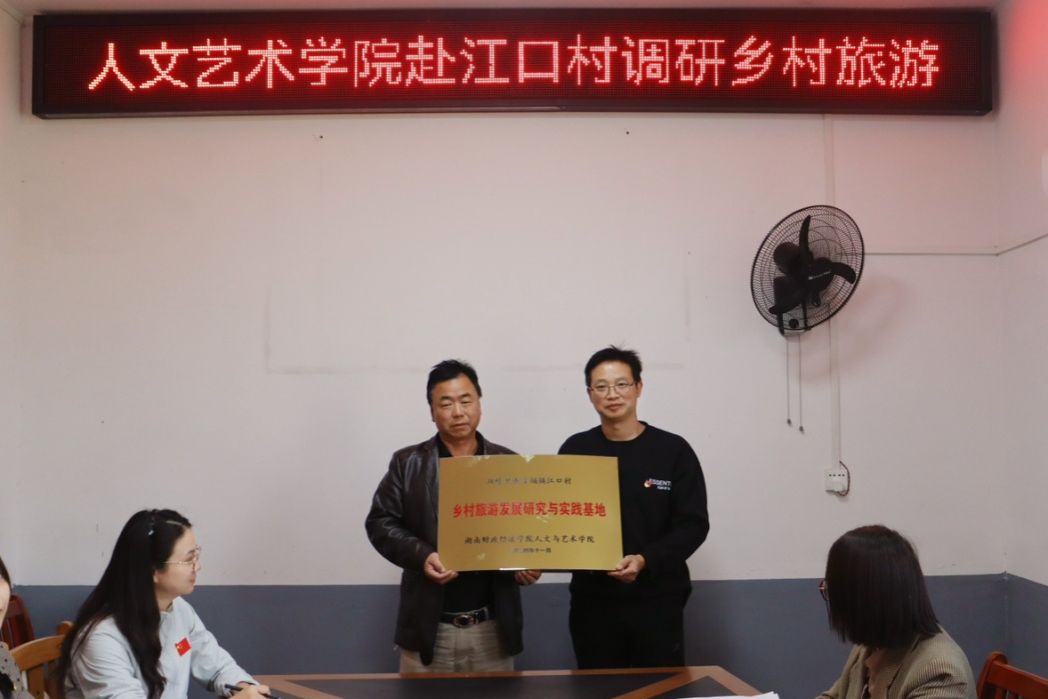 交流会结束后,人文与艺术学院乡村旅游发展研究与实践基地在双峰县杏子铺镇江口村授牌成立,林铁院长在江口村总支部委员会授牌。