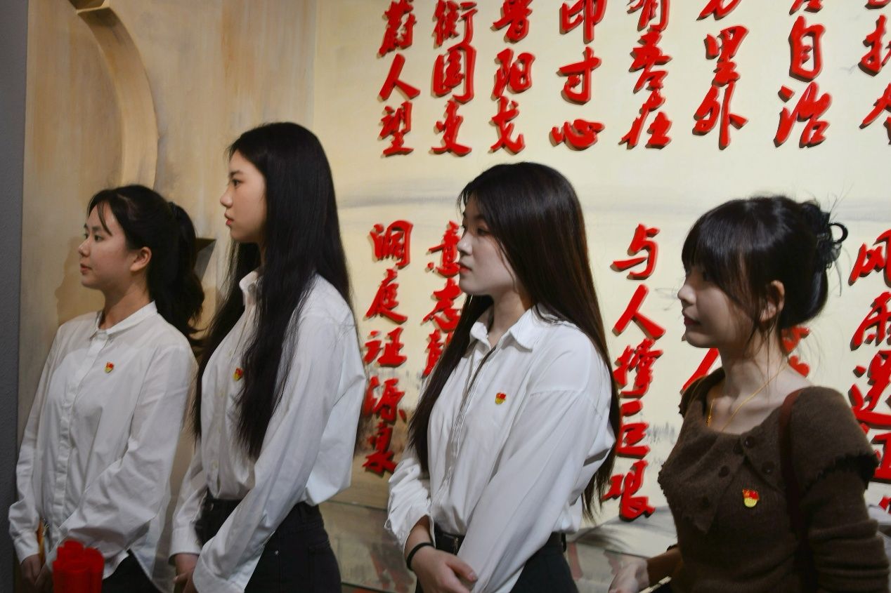 在蔡和森纪念馆,学生党员们怀着坚定的信念与无比崇敬的心情,追思先烈的丰功伟绩。大家深深感受到革命精神的崇高与伟大,心中涌起了对先辈们无限的敬仰之情。在庄严的氛围中,欧璐书记带领全体学生党员面向鲜红的党旗,齐声高喊入党誓词。每一句铿锵有力的誓言,穿透纪念馆的静谧,激荡在每个人的心间,坚定了大家不忘初心、砥砺前行、永远追随党的步伐的决心。