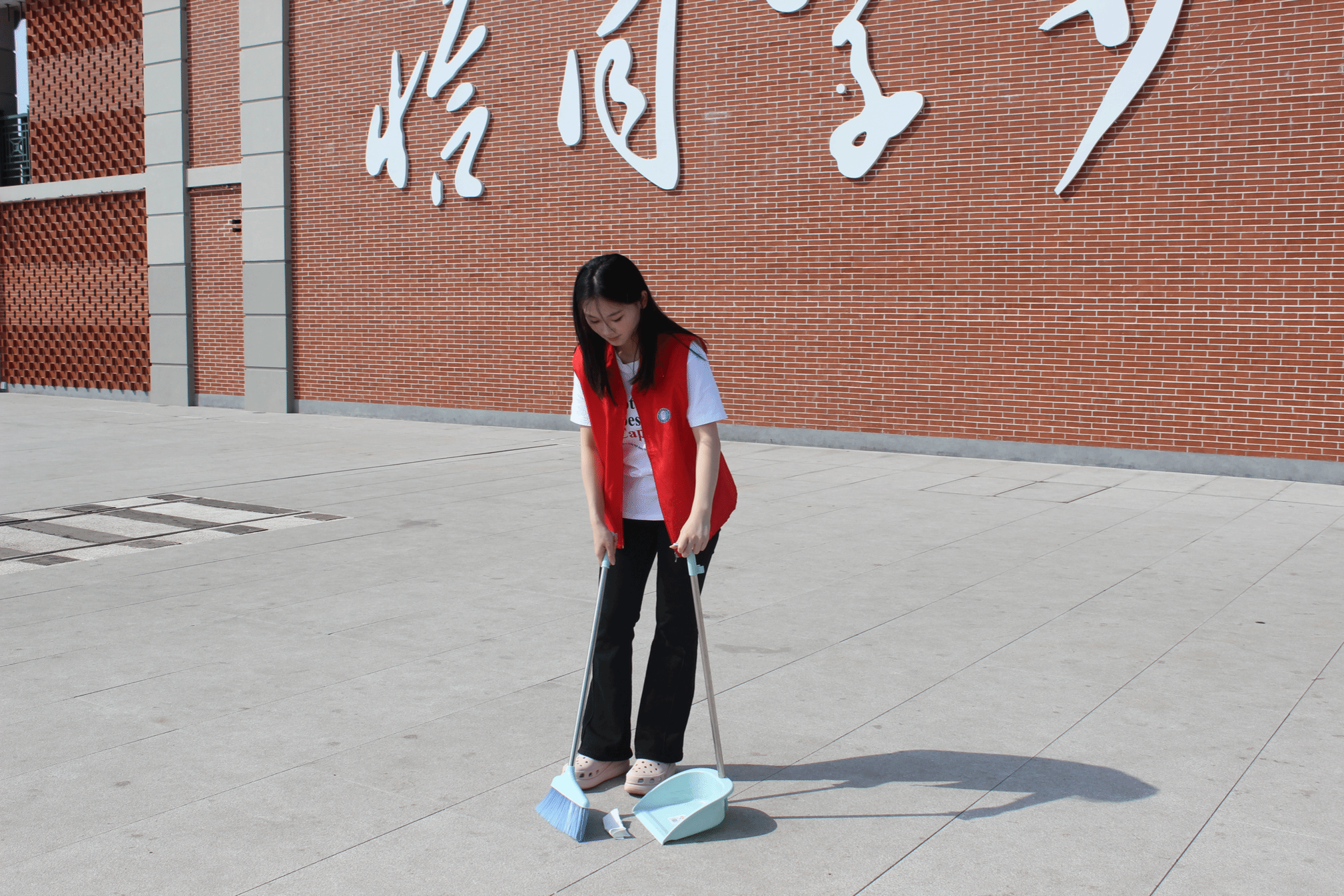 活动伊始,志愿者身穿统一的服装,分成清洁组与引导组前往广场,有序行动。清洁组手持扫帚、簸箕,认真清扫路面的杂物;引导组则耐心帮助群众答疑,用热情服务传递文明风尚。一抹抹“志愿红”穿梭其间,成为夏日里一道亮丽的风景线。