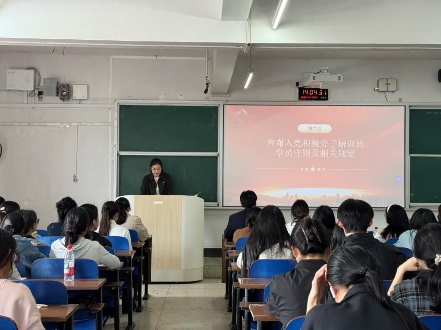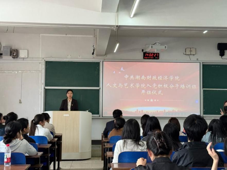 (本网讯)为深入学习贯彻党的理论知识,严格规范党员发展工作,筑牢入党积极分子思想根基,4月8日,人文与艺术学院在3109教室隆重举行2026年上半年入党积极分子培训班开班仪式。学院党委书记葛干忠、党委副书记杨艳、学工办主任徐晶、学生第一党支部书记胡斯阳、学生第二党支部书记李竹出席活动,全体参训学员共同参加。开班仪式由党委副书记杨艳主持。