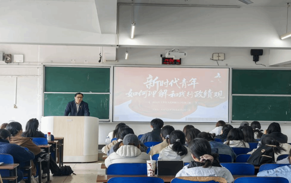 葛干忠围绕《新时代青年如何理解和践行政绩观》这一主题,通过系统化的理论架构和生动鲜活的案例分析,为学员们呈现了一场内容丰富、思想深刻的专题党课。课程内容主要分为四个部分:一是为什么要追问“政绩观”,通过梳理政绩观对于党的价值与作用,阐释其在新时代的重要意义;二是新时代正确政绩观的核心内涵;三是对照初心检视自身,认清青年成长中的思想误区;四是立足当下躬身践行,以实际行动筑牢入党根基,为学员们提供切实可行的行动指南。