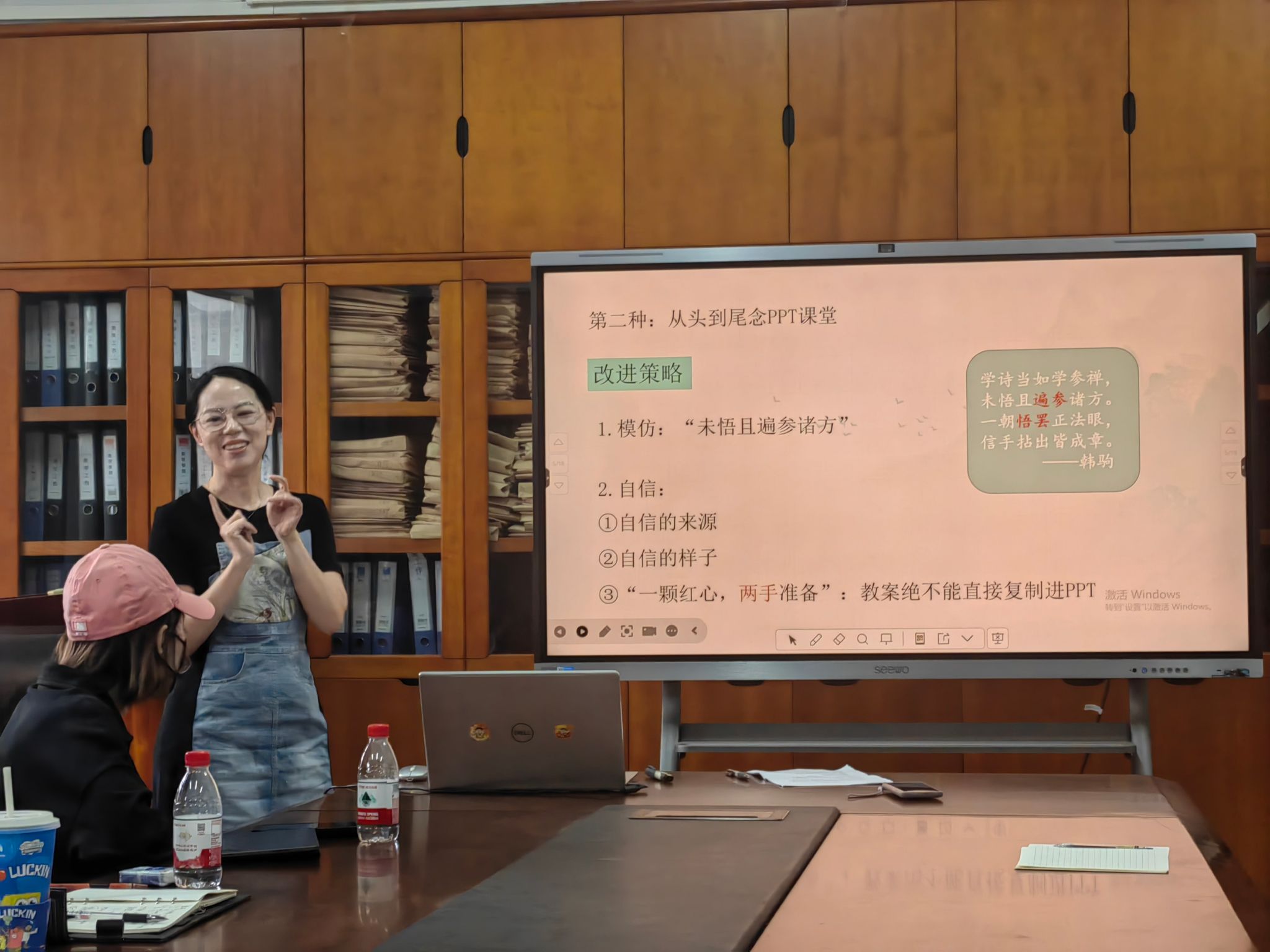副院长毛璐璐主持会议,她结合青年教师初上讲台时易犯的错误,如教学经验不足、课堂掌控不够等,着重强调青年教师要充分认识到磨课的重要性,以扎实的态度投入磨课过程,在不断磨砺中提升自身教学能力。