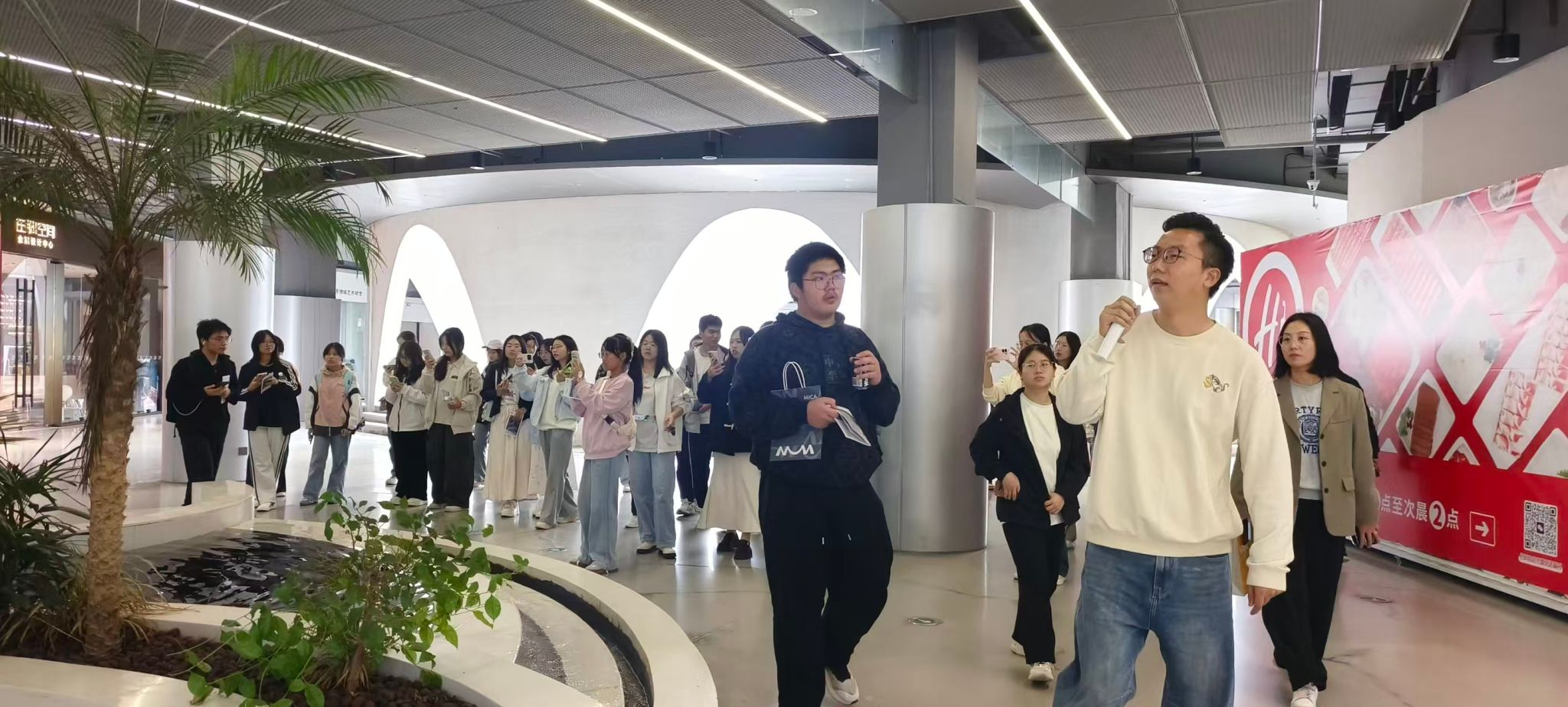 随后,我们前往了西湖公园大汉阿友INParK。作为艺术与商业深度融合的典型案例,这里的业态布局、场景设计让同学们眼前一亮。大家在工作人员的带领下通过实地走访商铺、观察运营模式,详细了解了艺术IP如何赋能商业场景、文化元素如何提升消费体验,对专业课程中“文化产业运营”“创意商业转化”等知识点有了更具体的理解。