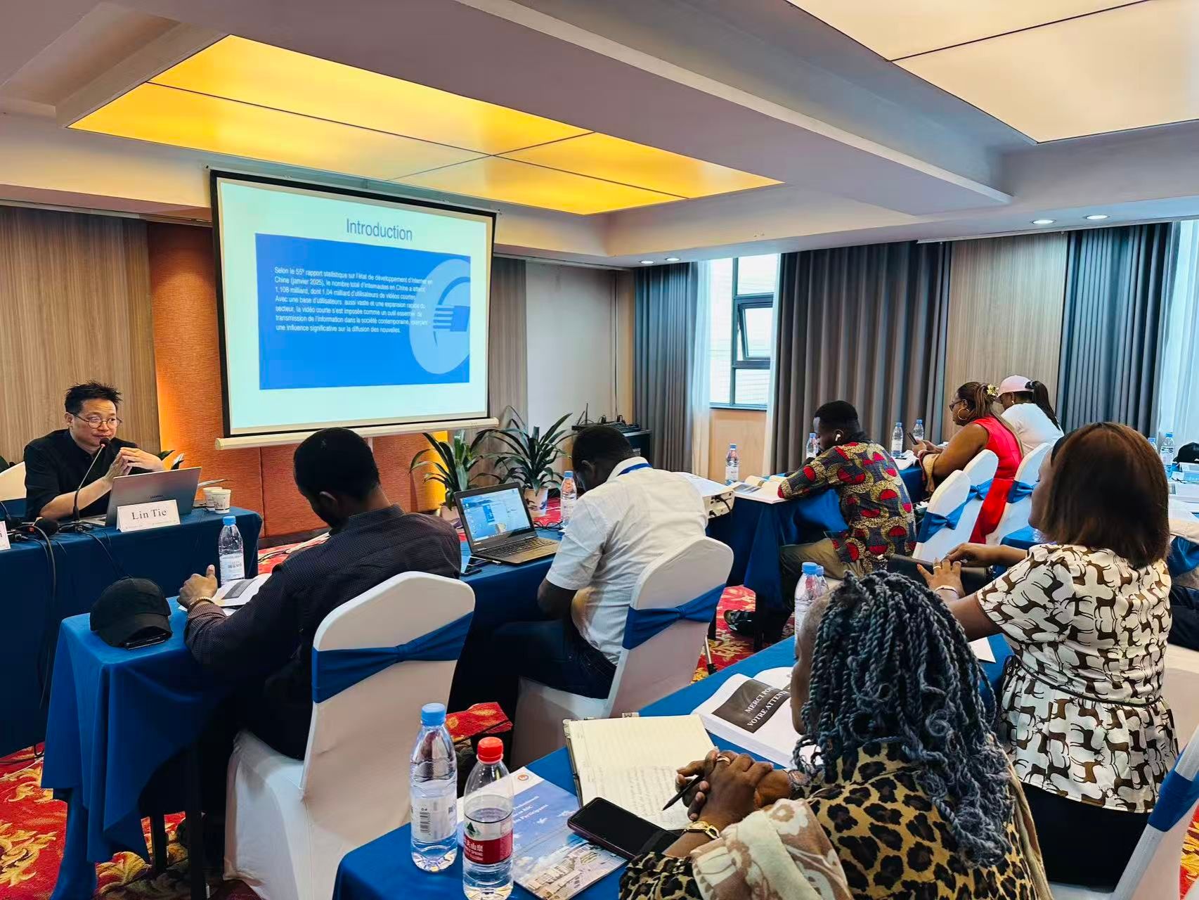 授课过程中,林铁与来自刚果(金)媒体行业一线的学员们积极互动,研讨热烈。授课活动为促进中非在新闻传播领域的交流与合作搭建了有益的桥梁。